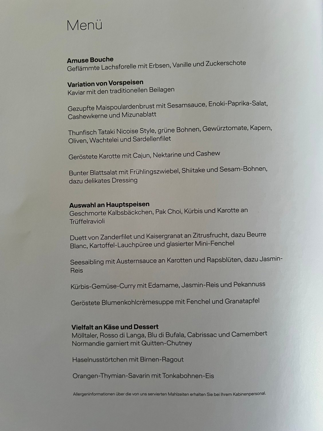 The Lufthansa Longhaul Menu Thread (business class / first class)