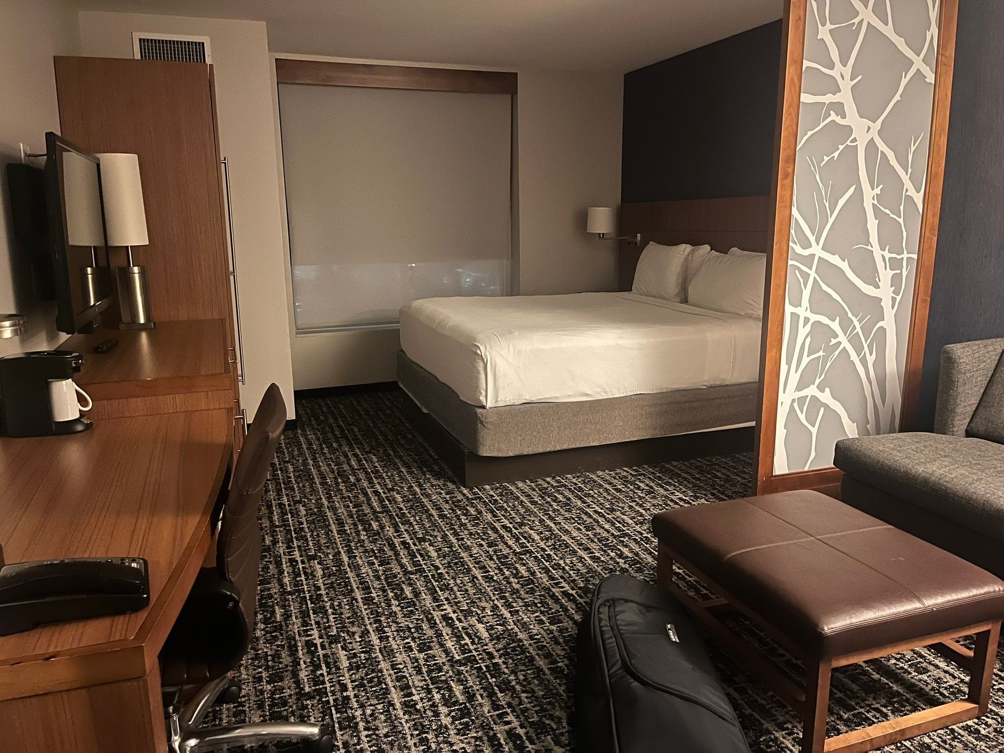 Room: I booked and received a standard King room on points. I noted three classes of suites were available through midday on my arrival date, then they all disappeared - not sure if someone else got them or the hotel just didn't feel like upgrading people. No big deal and I know suite upgrades are not part of the standard package at HP. When we walked into the room my son said "this looks like every other Hyatt Place everywhere" and he was correct. I had no issues at all with the room.