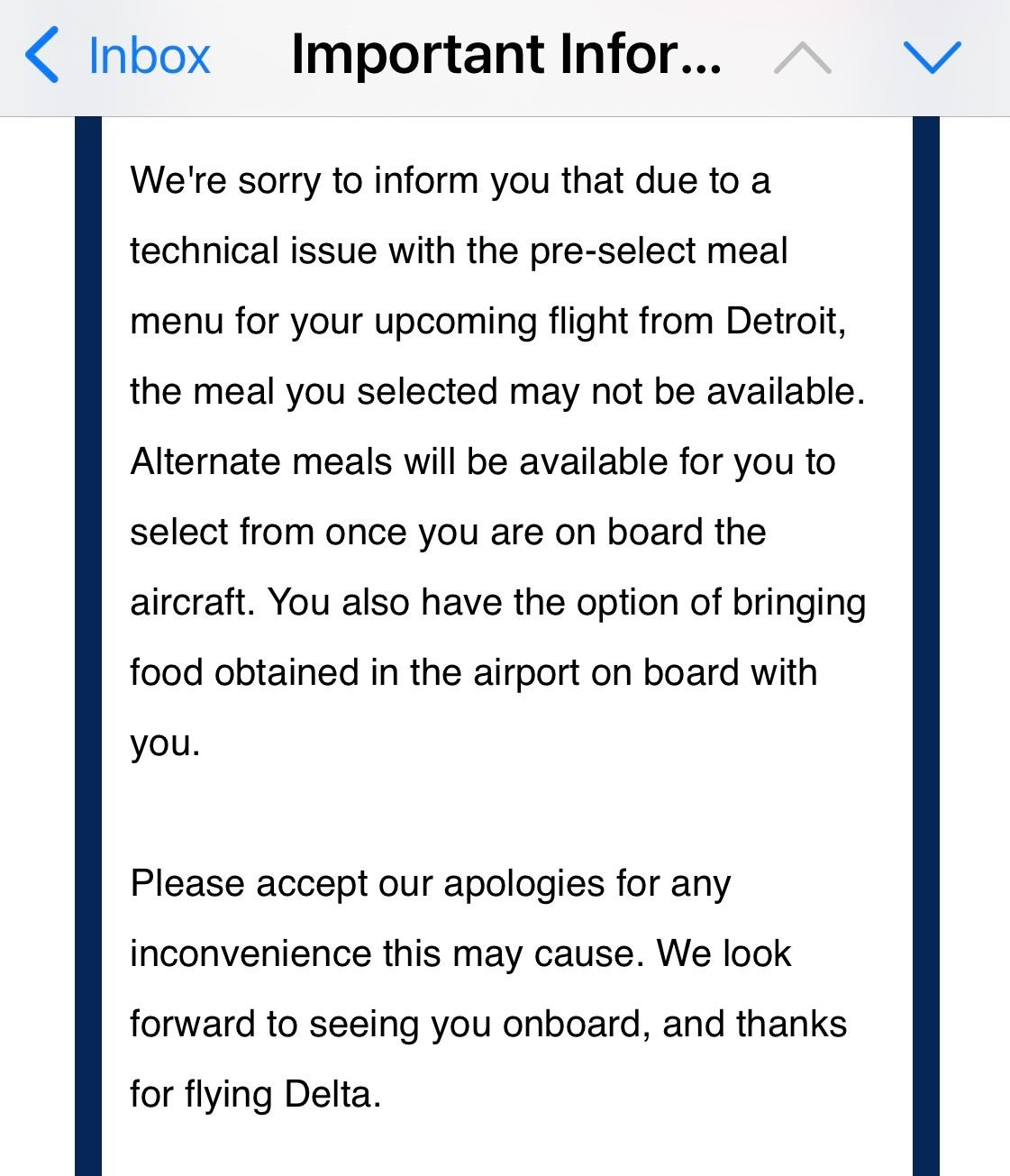This is a part of e-mail I received for my upcoming flight. The menu selection page is now disappeared.