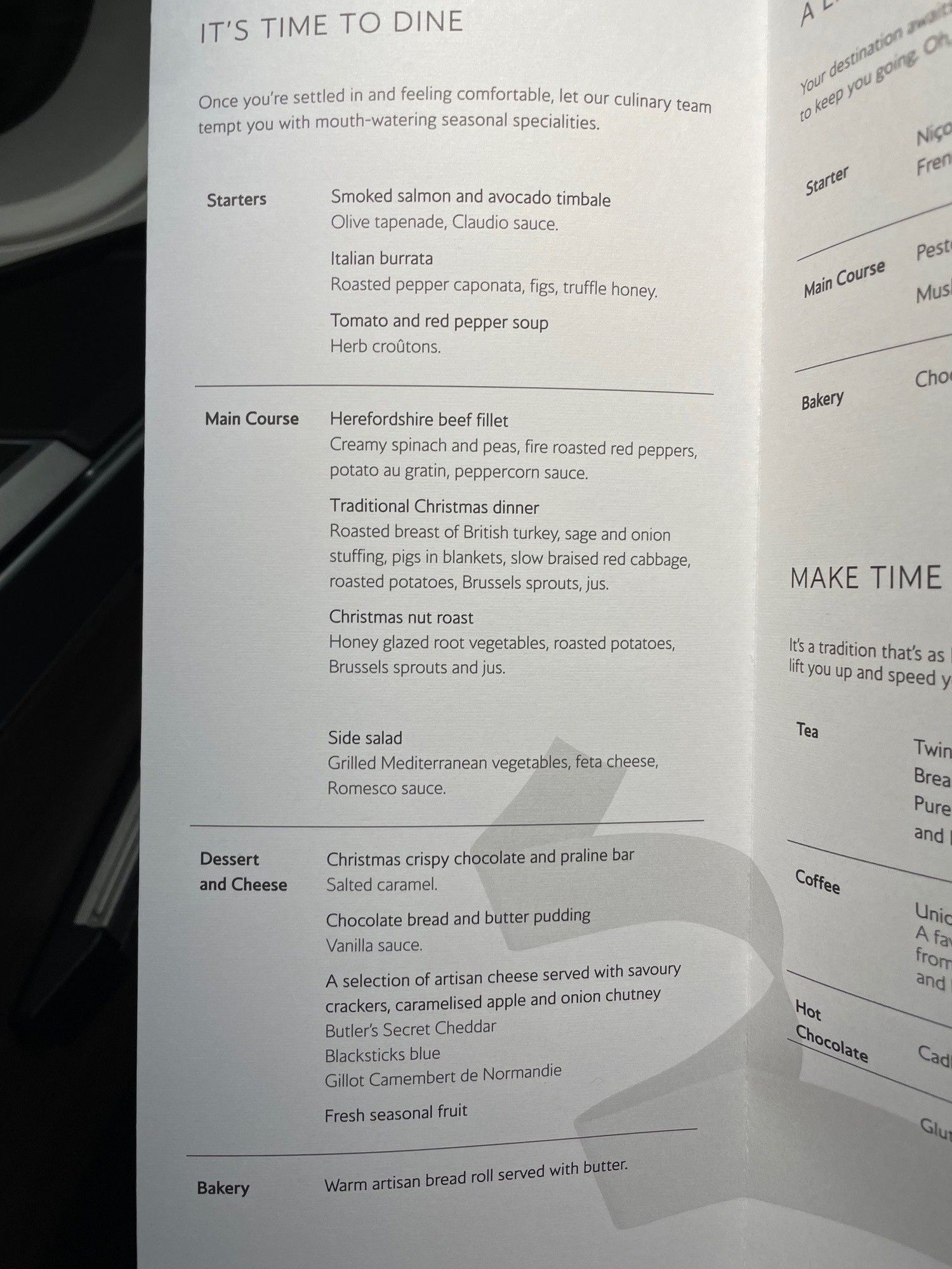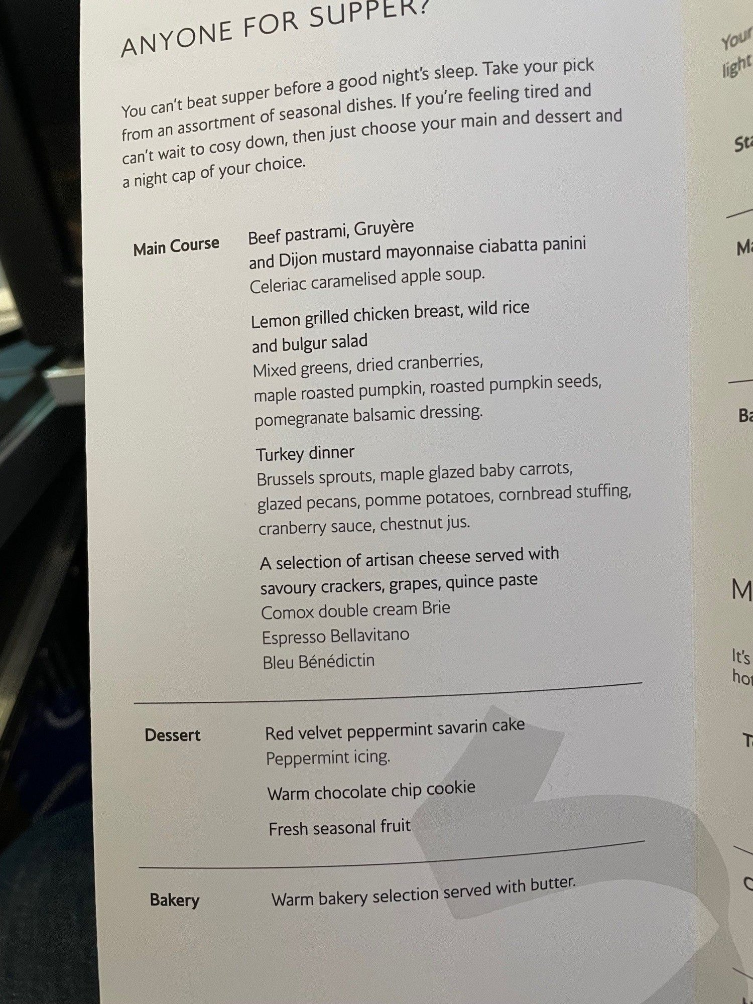 BA84 got suppered - flew it last year and it was before 9PM, this time it was at 9:20. Not at all thrilled, and turkey didn't feel like the right move, so I asked for the cheese plate and if it was possible to have the soup that came with the sandwich. I was obliged and washed it down with a glass of port. Meh.