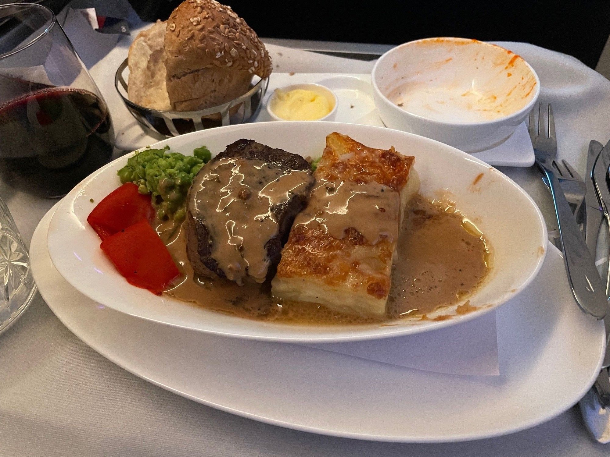 Beef was overcooked but the plentiful and tasty peppercorn sauce made up for that.