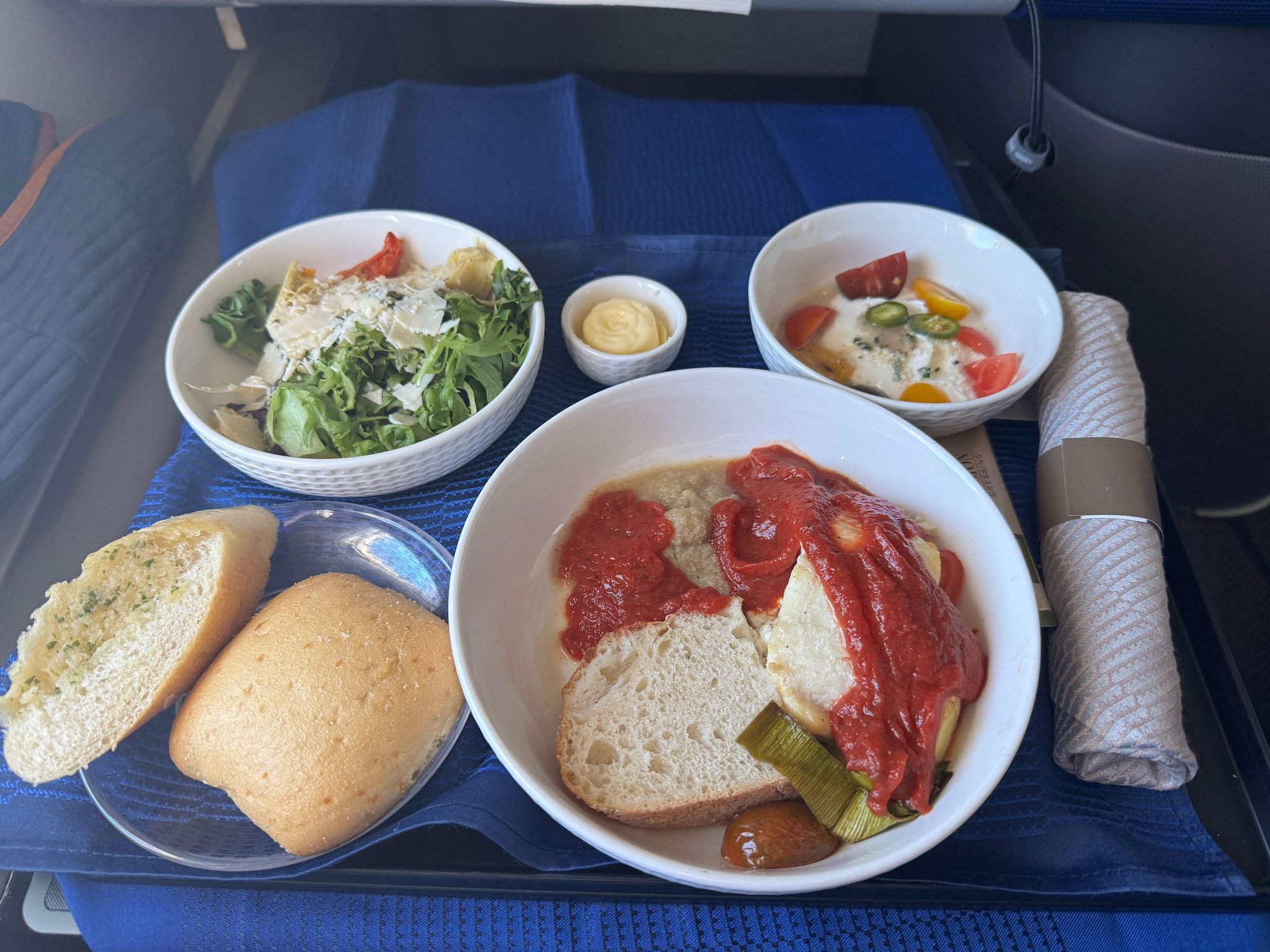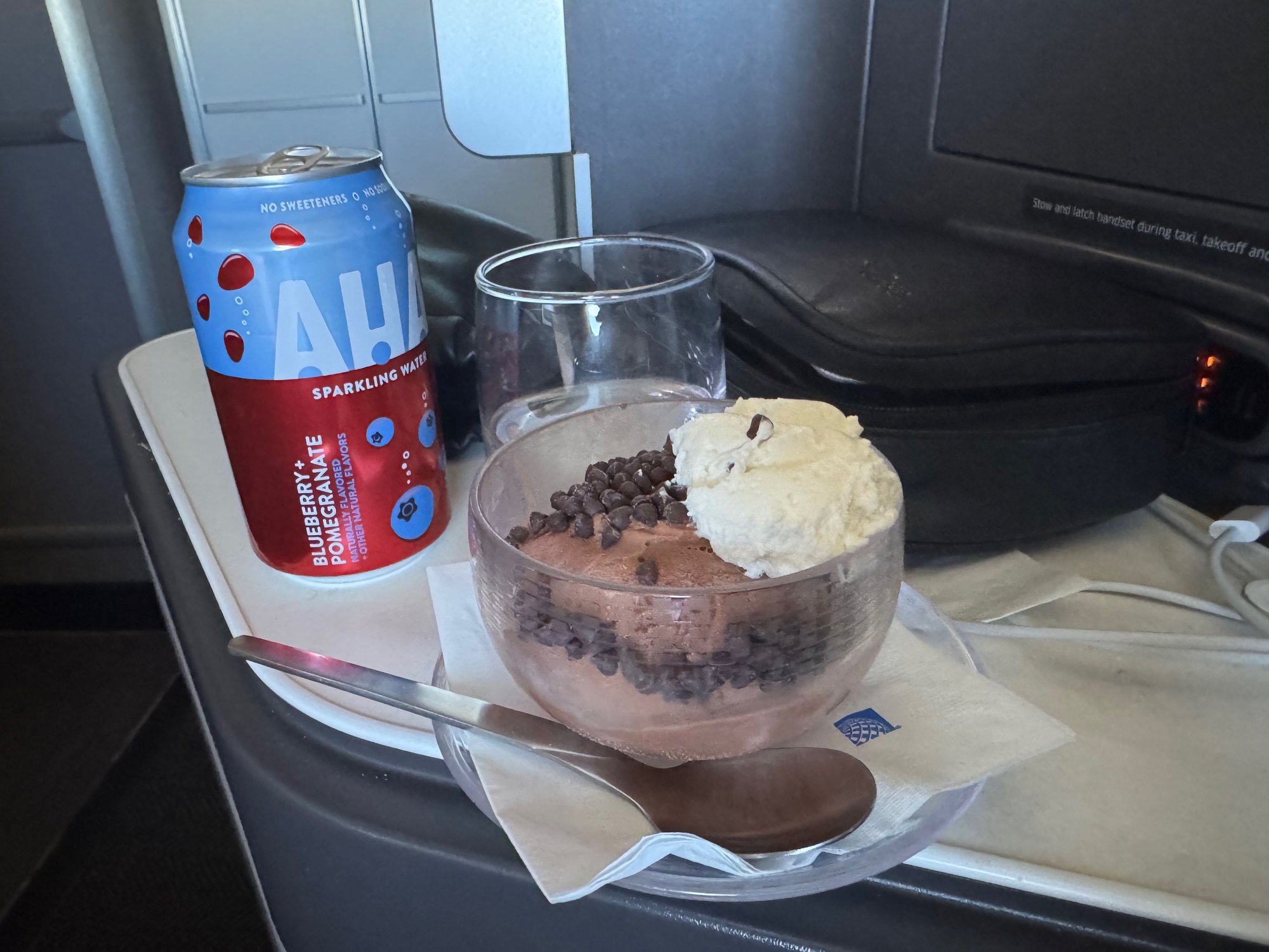 PDB open bar, pre-order worked (I chose the haddock.), 1K recognition, towels, then warm nuts and drink, then meal, sundae after.