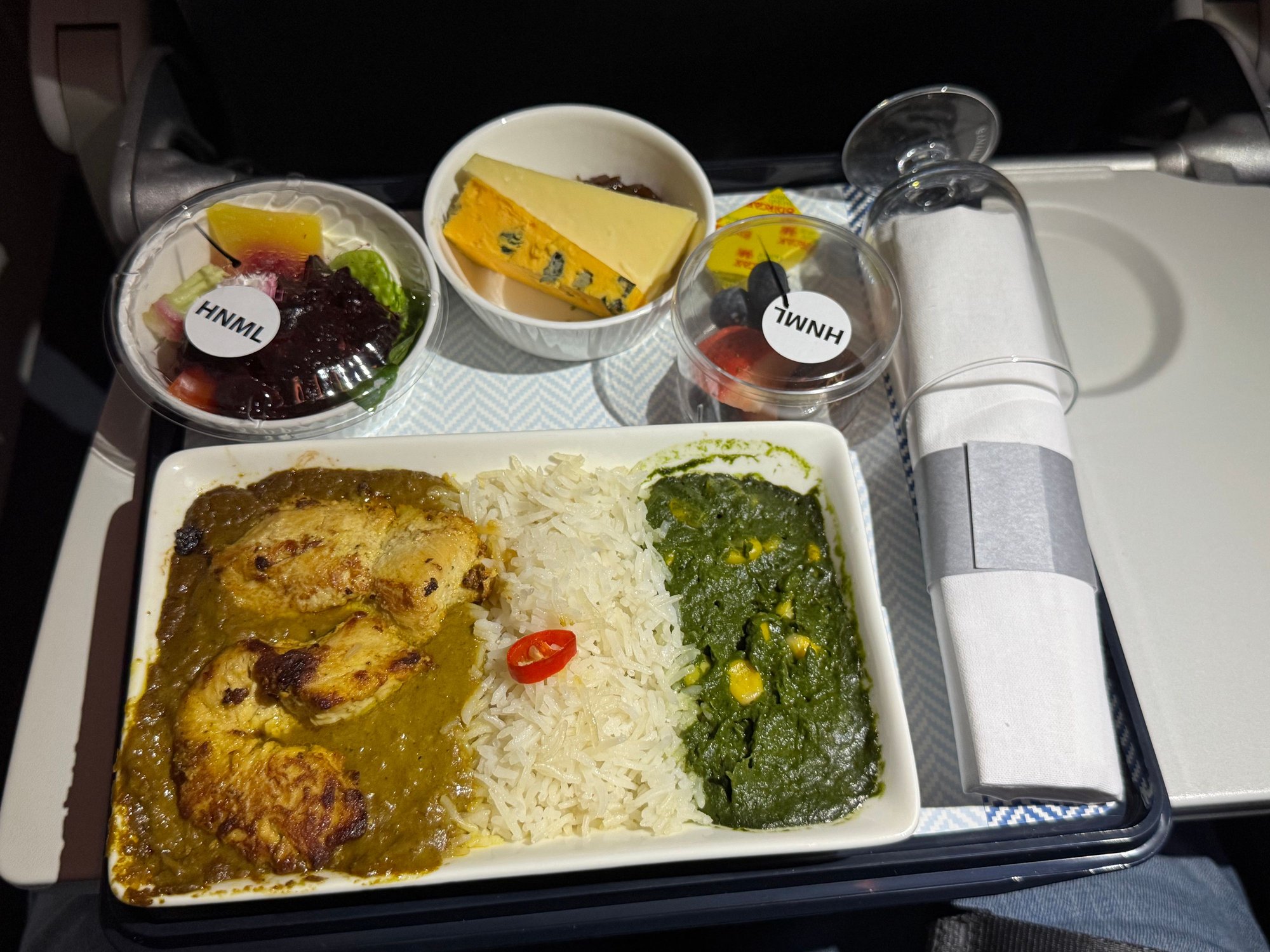 Had the chick pea salad which was fine. Went for the non vegetarian Hindu meal trundling down to OTP which was very nice - chicken curry, spinach/chickpeas and rice