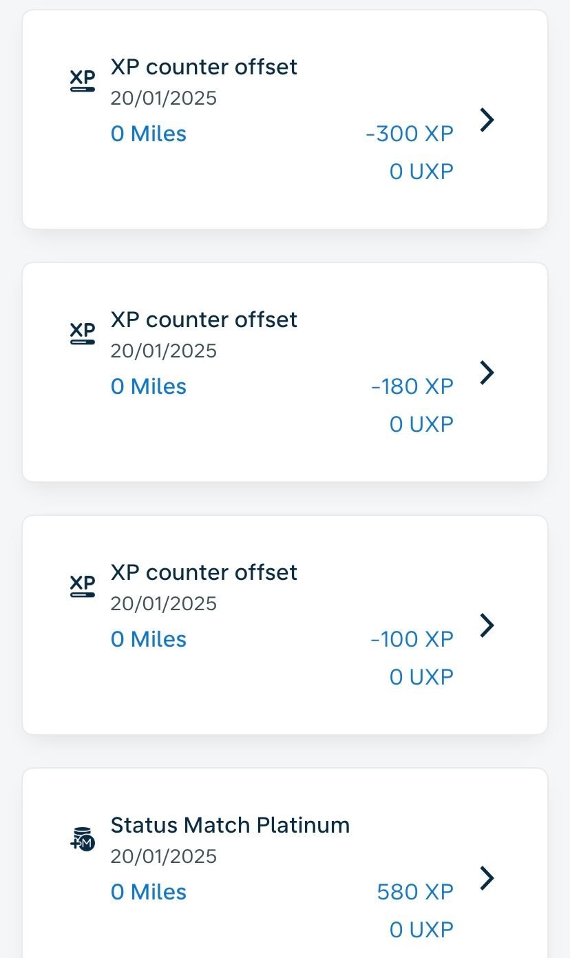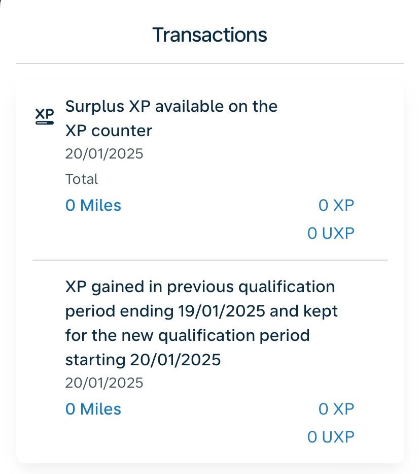 I didn’t have any XPs prior to being status-matched into FB (my XPs from last year had expired at the end of 2024), but… from my reading of how the match has been processed in my account, I would say you