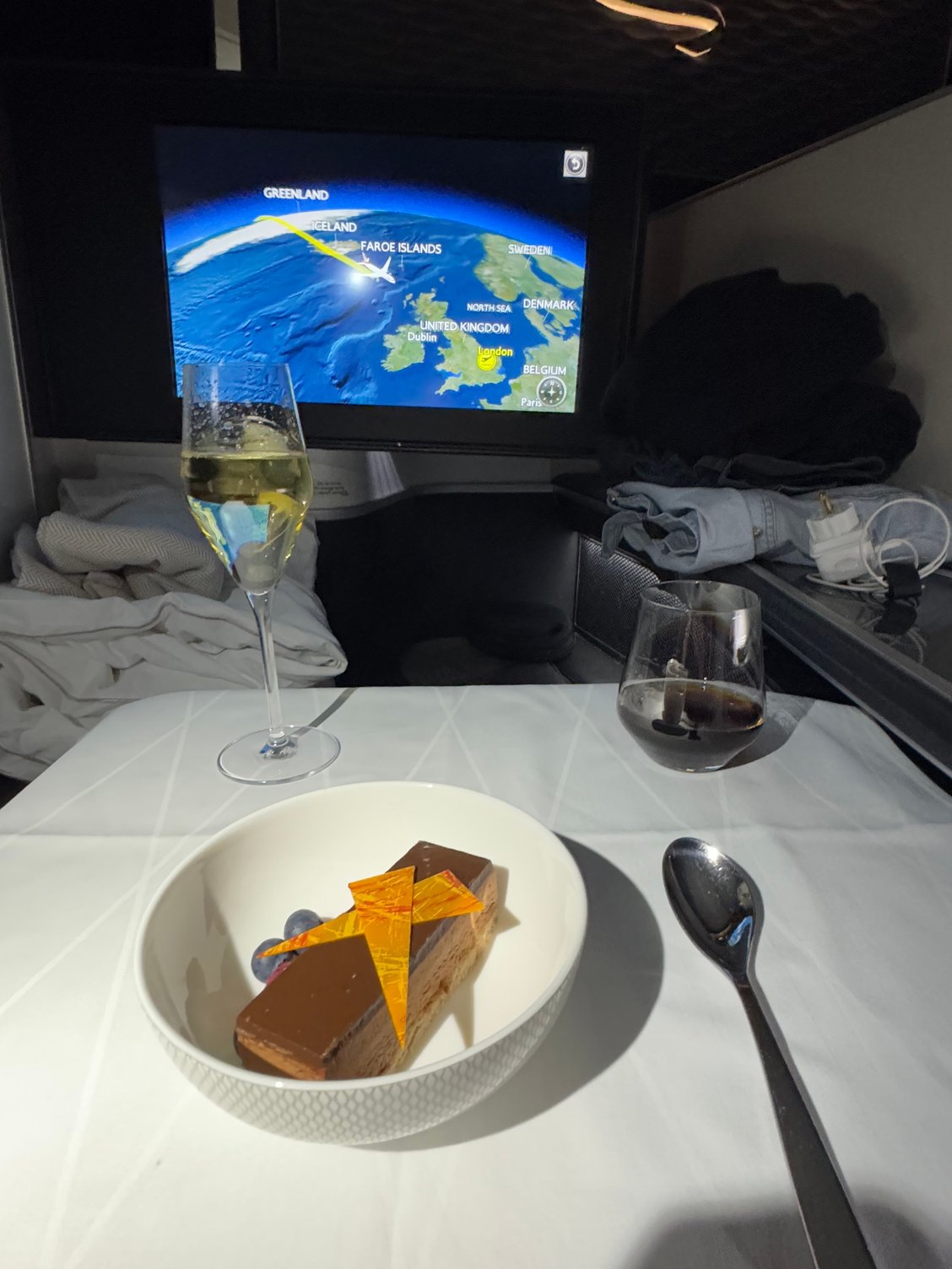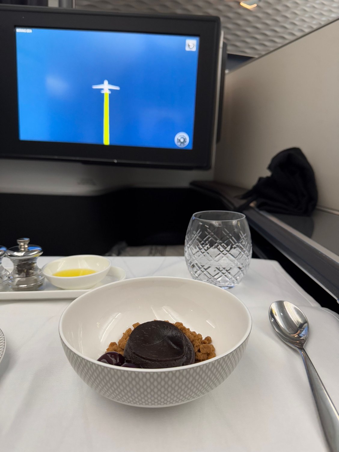 Here are the photos of my return flight from Tokyo HND-LHR, earlier this February. As mentioned above in the thread, no breakfast or brunch but a lunch then followed by a light meal before landing. I skipped the starters this time hence why it's not shown in the photos below. I must say the service was very bad on this flight, the worst I got on BA First in a while. A shame as it's a long sector. I was also shocked by how little they proactively offer snacks - it felt really long between the meals. They reacted about 3 to 4 hours before landing after passengers complaints - but for hours on end nothing at all. Catering was also quite poor. Lunch was salmon with udon (the fish was very dry), followed by a chocolate and coffee fondant sprinkled with crumbs of what felt like... dog food. For the light meal, I took the chicken teriyaki with rice and then the opera cake as dessert (that was the unique choice). This pre-landing light meal was actually better than the lunch. Drink service was equally bad, the Rare champagne was served only in the last four hours of the flight - they kept insisting on serving the sub par Heidsieck beforehand, even when confronted to ask for the Millesime. They even managed to burn (and I mean burn heavily) the nuts - inedible.