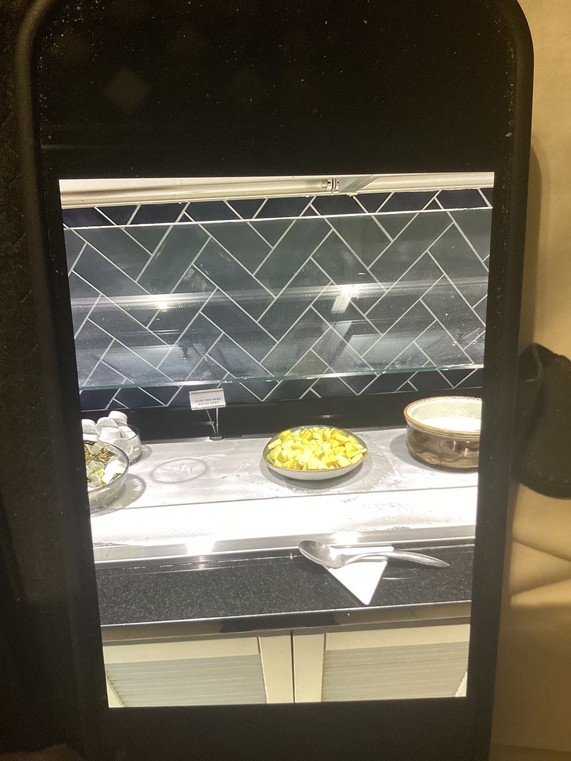 Massive variety of fruit sorry no berries folks Some communal yogurt exposed to the elements And no hard boiled eggs as there are none due to the shortage