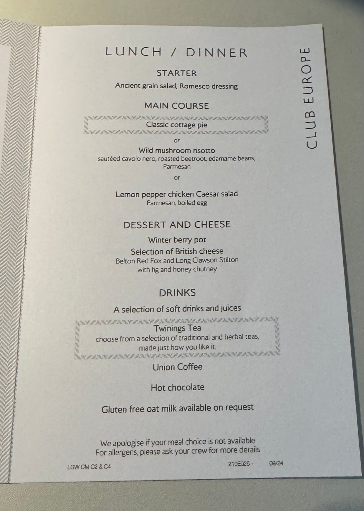 Cottage pie, LPA-LGW last night. It was a little dry, but very tasty. The dessert was a little cakey thing rather than the usual gloopy pot.