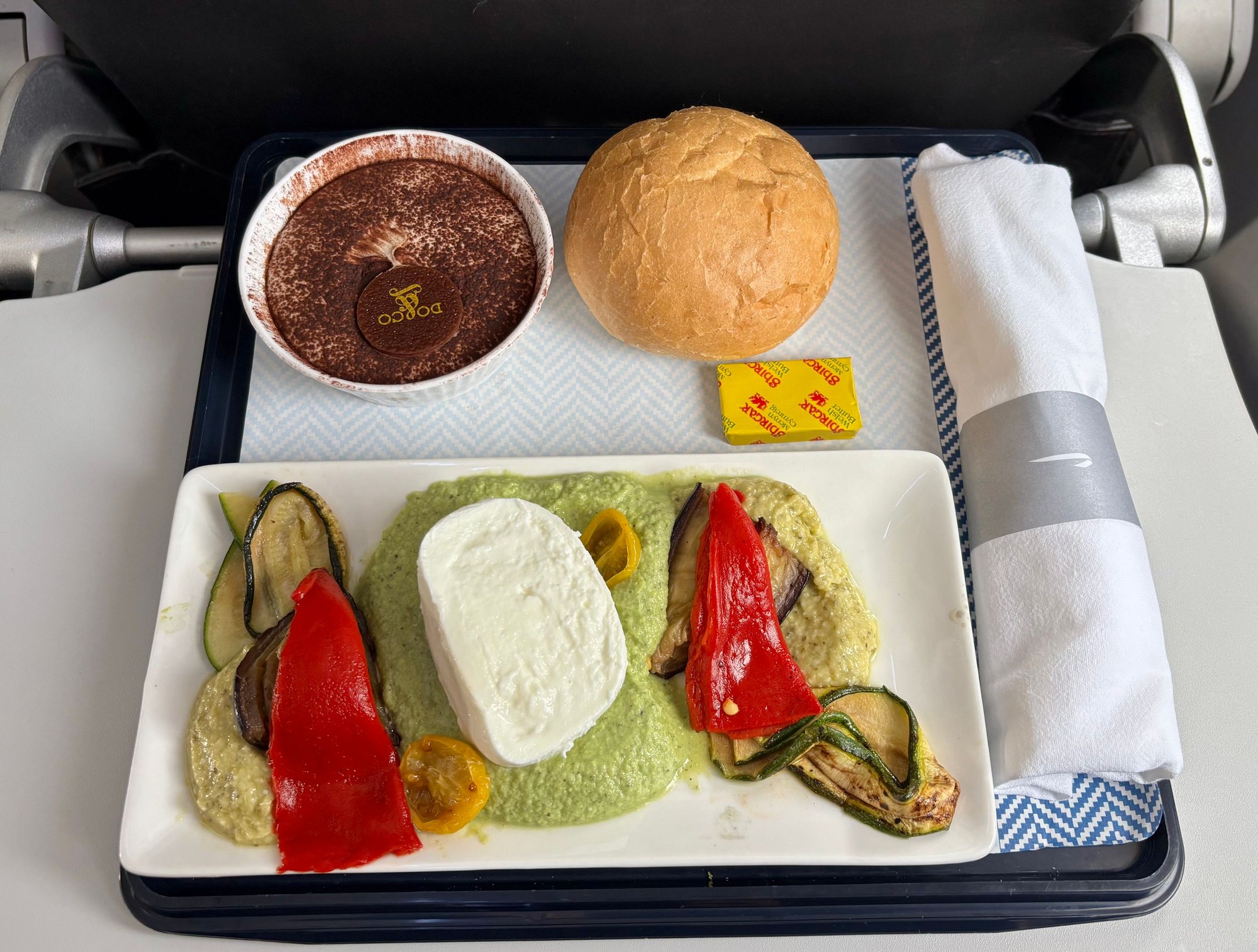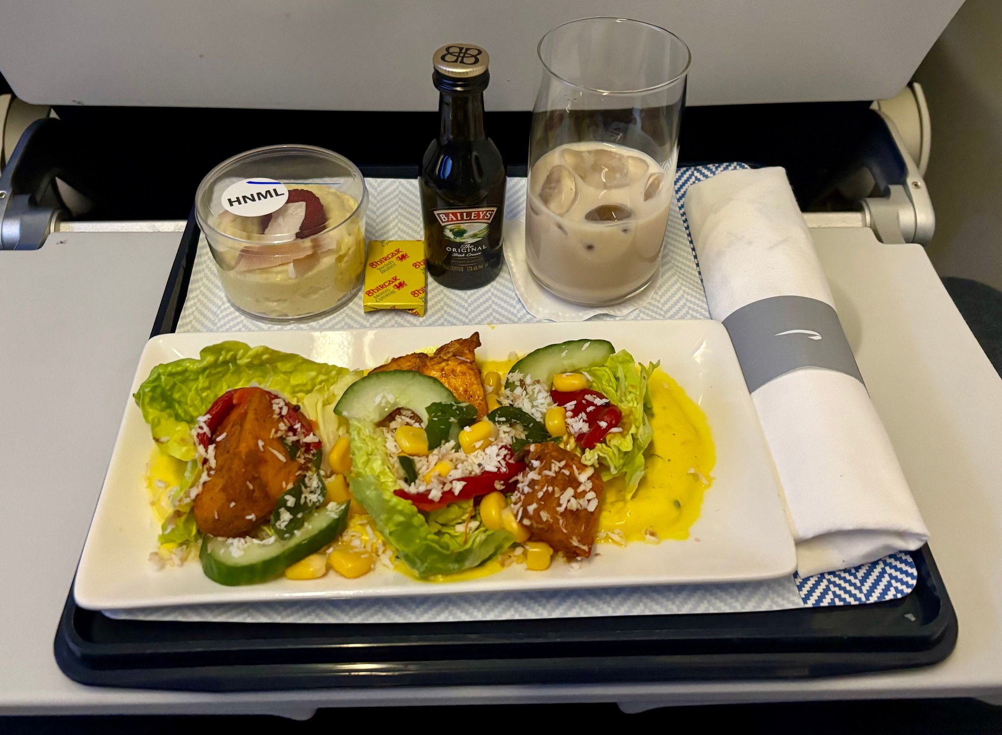 EDI-LHR, no menu cards. I had ordered (or thought that I’d ordered) a Hindu non-vegetarian special meal, this was all vegetables and went back mostly uneaten. What at first glance looked to be chicken, was in fact sweet potato. Consoled myself with both bottles of Baileys for this sector.