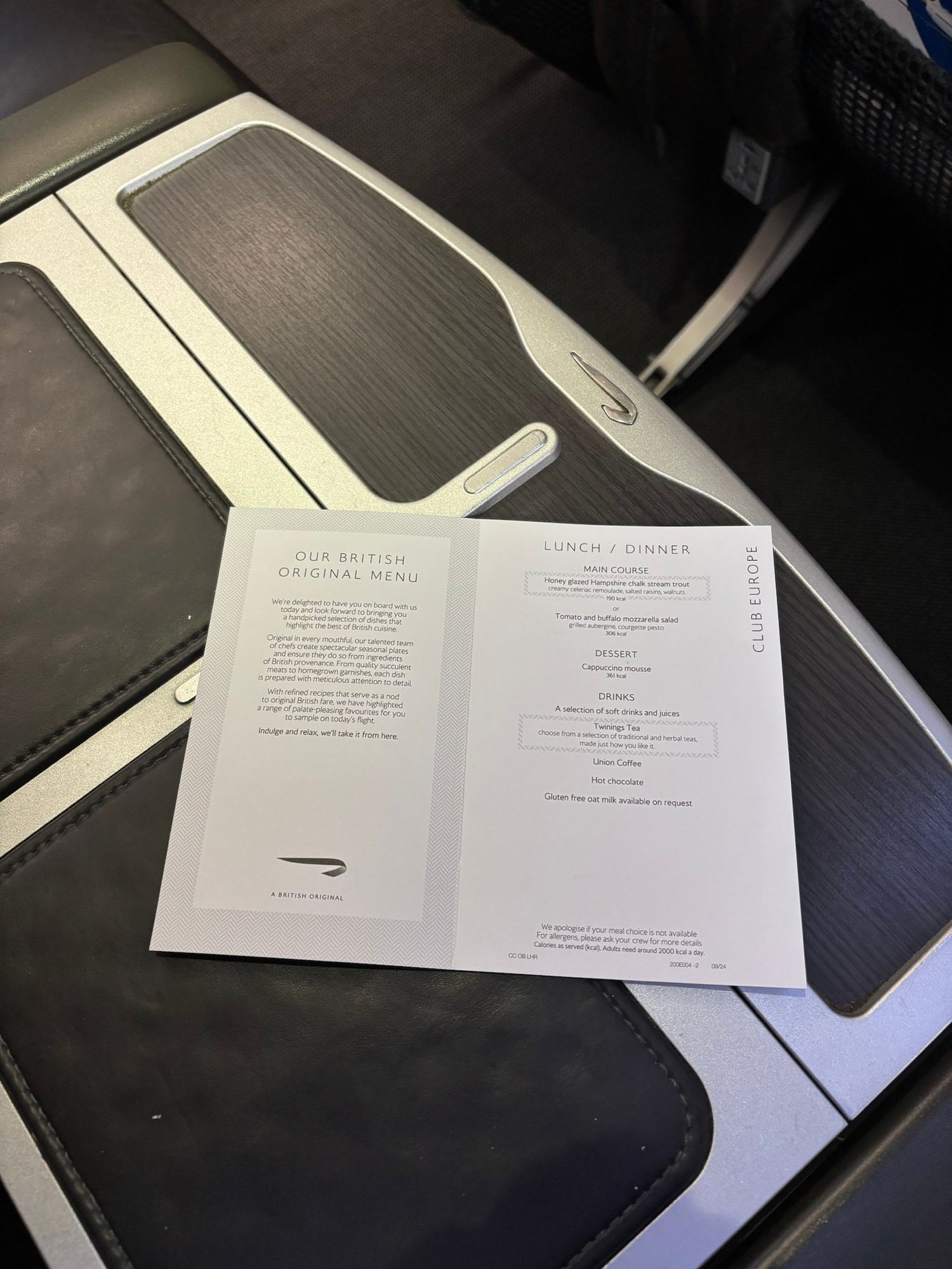 LHR-EDI last Friday, menu cards handed out, which was a surprise.