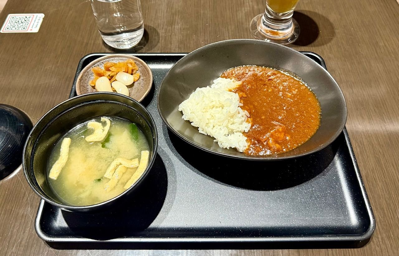 The lounge was quiet; maybe 20% capacity. In the dining room I requested a small curry and miso soup, and it was pretty nice, although a lack of meat. Of course I had to get one last beer machine Asahi.
