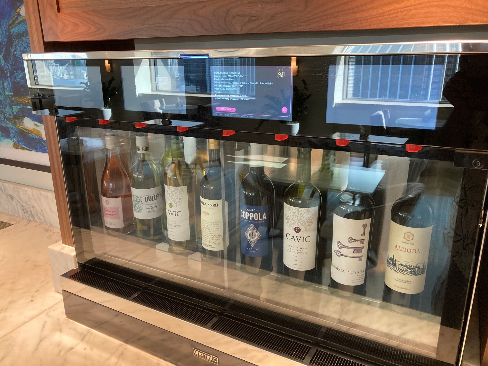Below the self service alcoholic drinks area
