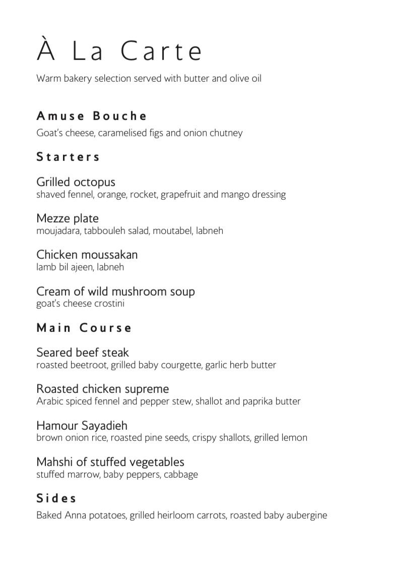 I doubt most passengers (or crew) have much idea what ‘moujadara‘, ‘lamb bil ajeen’, ‘Sfouf ashta’ are.