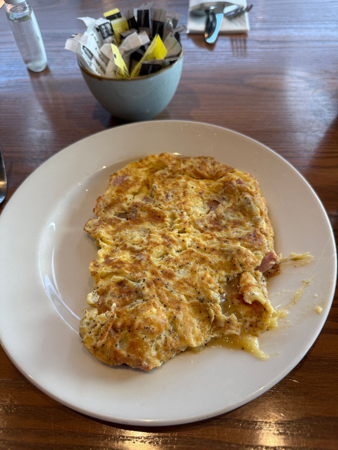 - Breakfast is only served in restaurant - omelet with cheese, bacon, sausage, and ham was one of the best omelets I have ever had - hashbrowns were decent