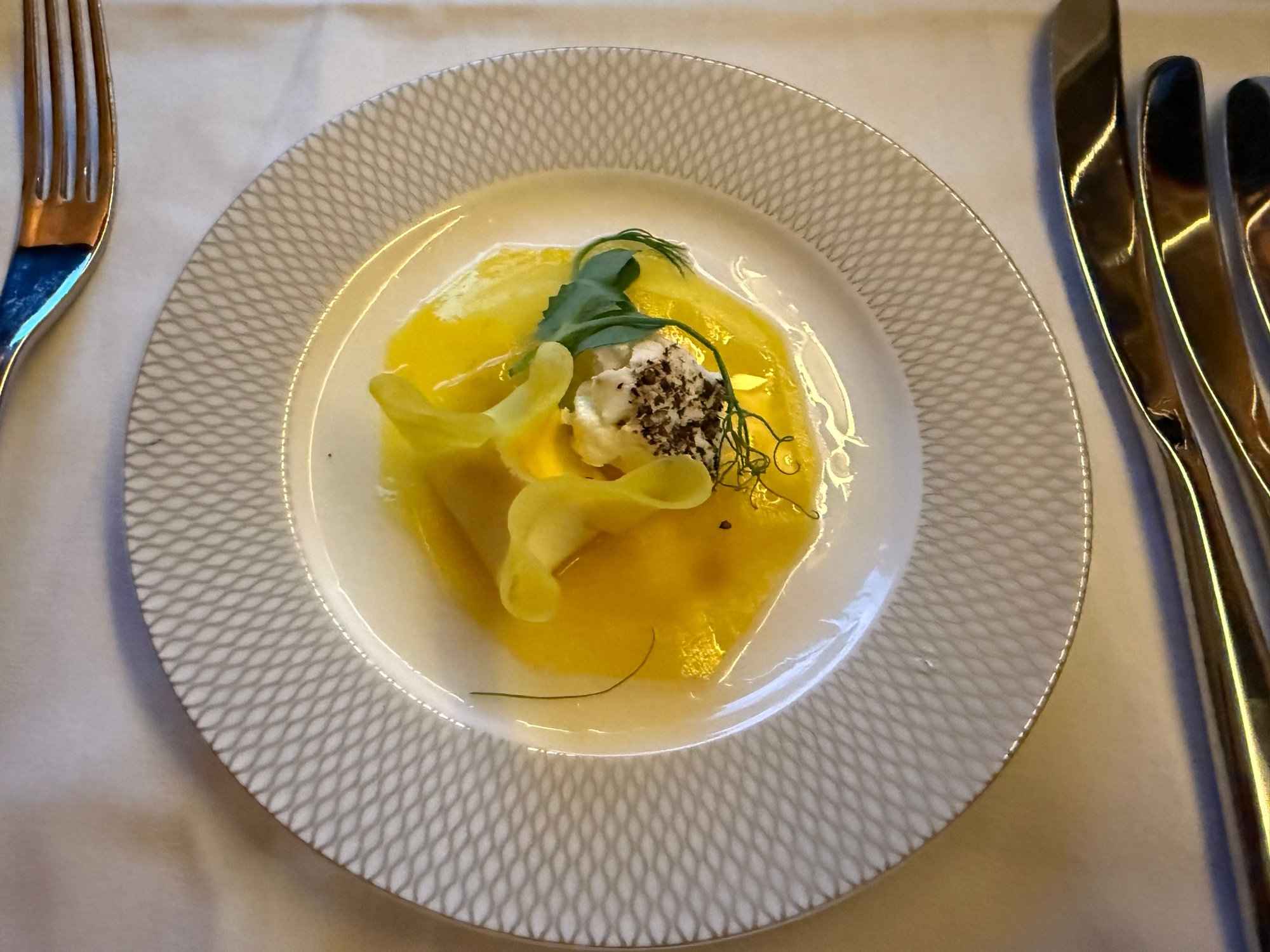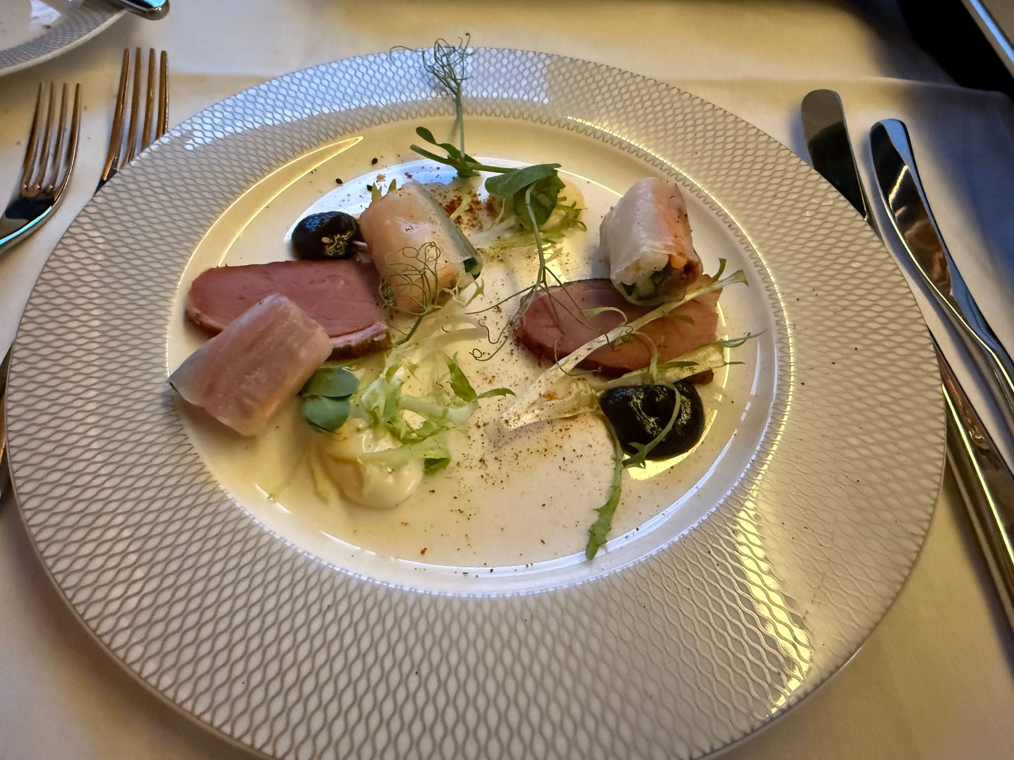 Golden beetroot and goats cheese amuse bouche. This was quite nice as the dressing was both sweet and sour.