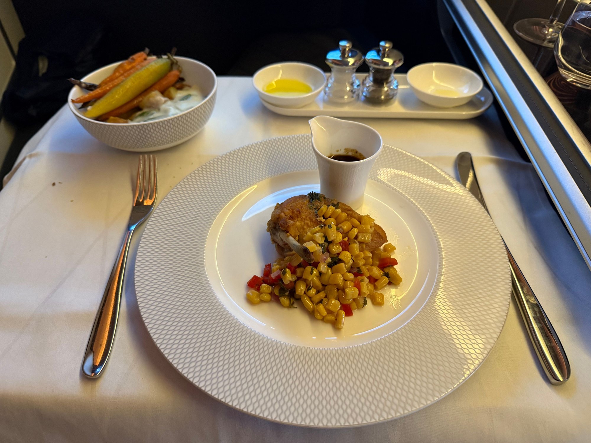 Grilled corn fed chicken supreme. Not sure the thyme jus, which was really good on its own, worked with the creamed spinach, but overall it was quite tasty