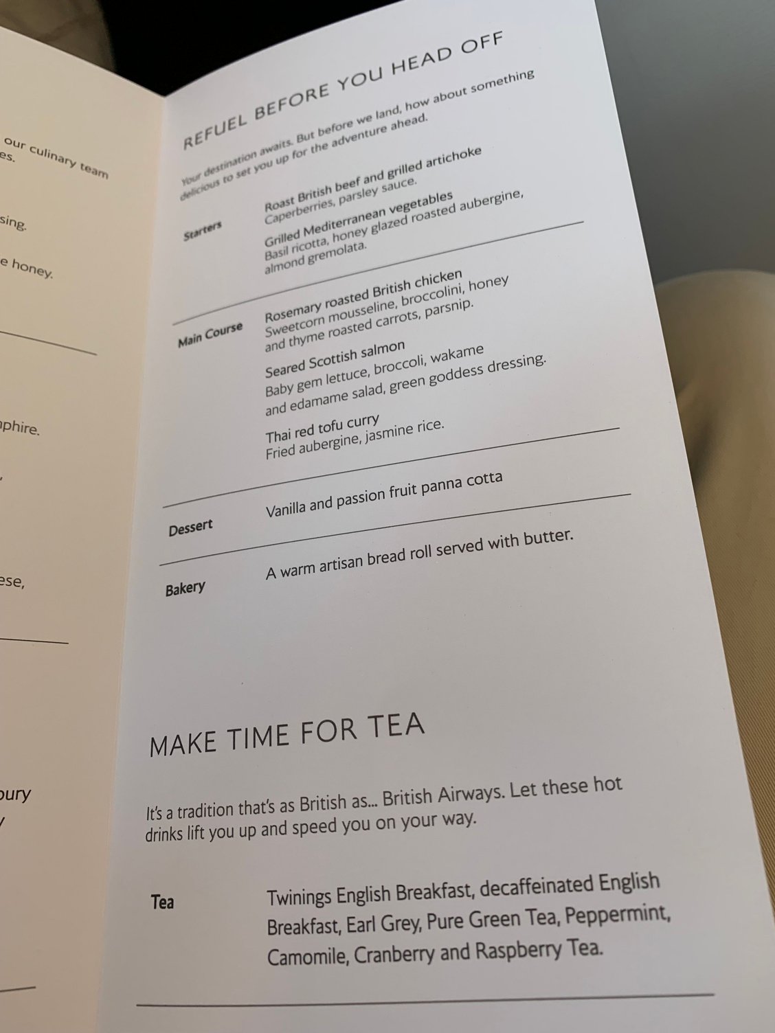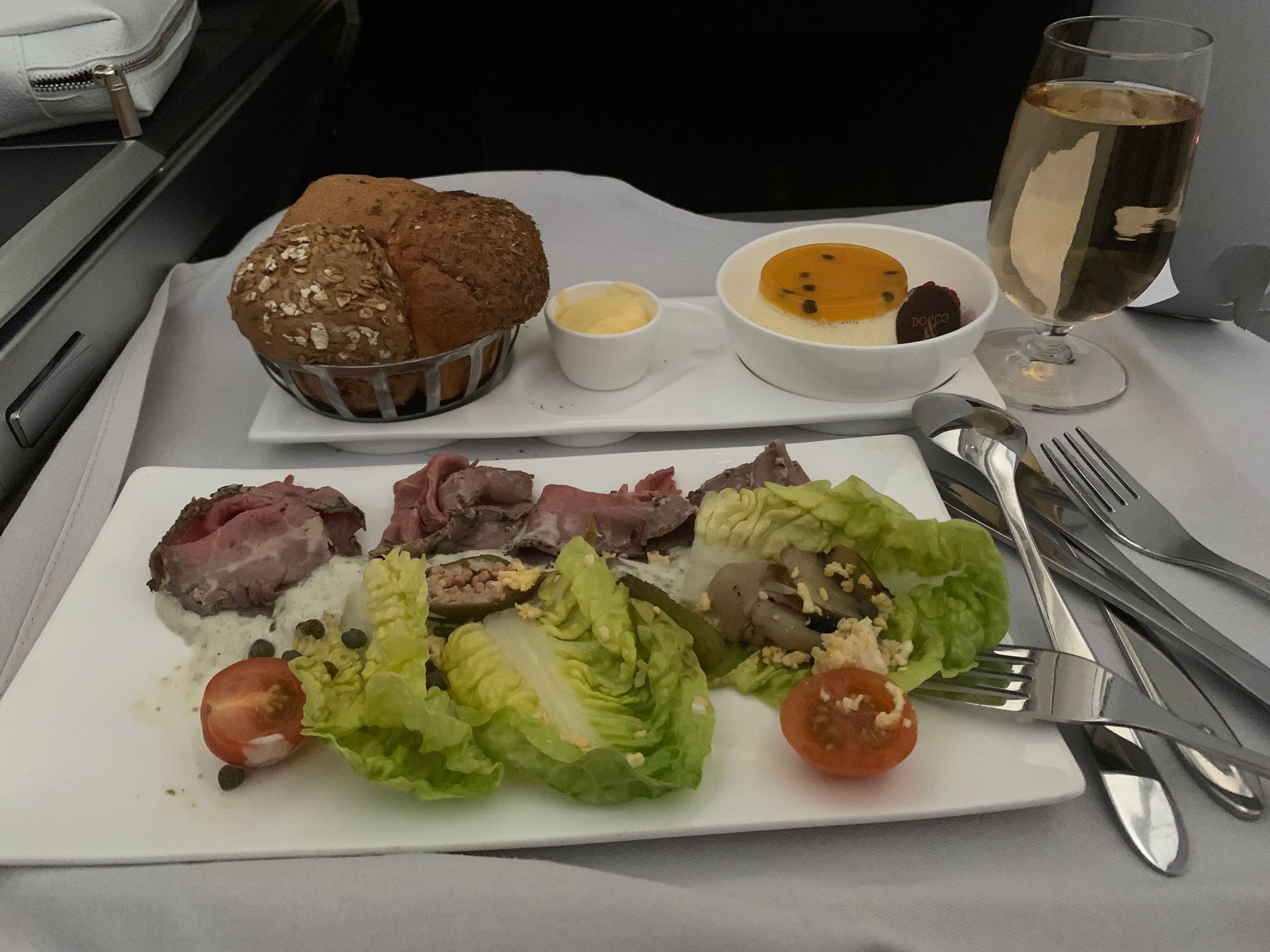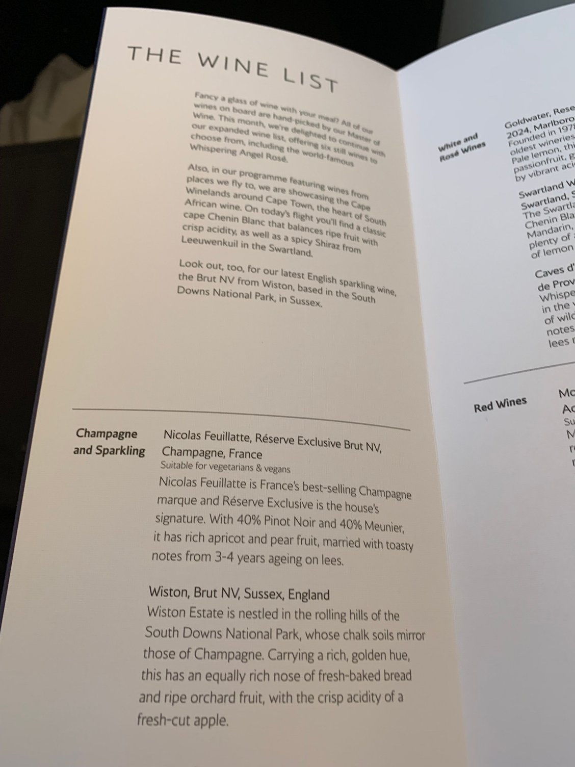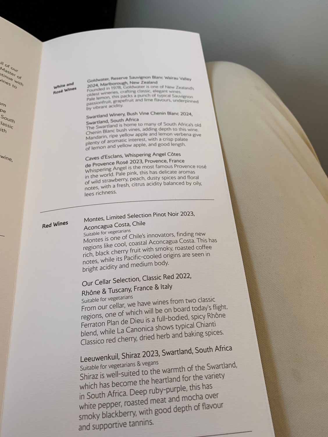 I enjoyed the Champagne (which comes as a surprise to no one) and the Rhone was robust and went exceedingly well with the main course, the cheese and the second meal. The crew were delightful and I slept quite a lot. I watched Conclave again on the IFE which had some decent films for once.