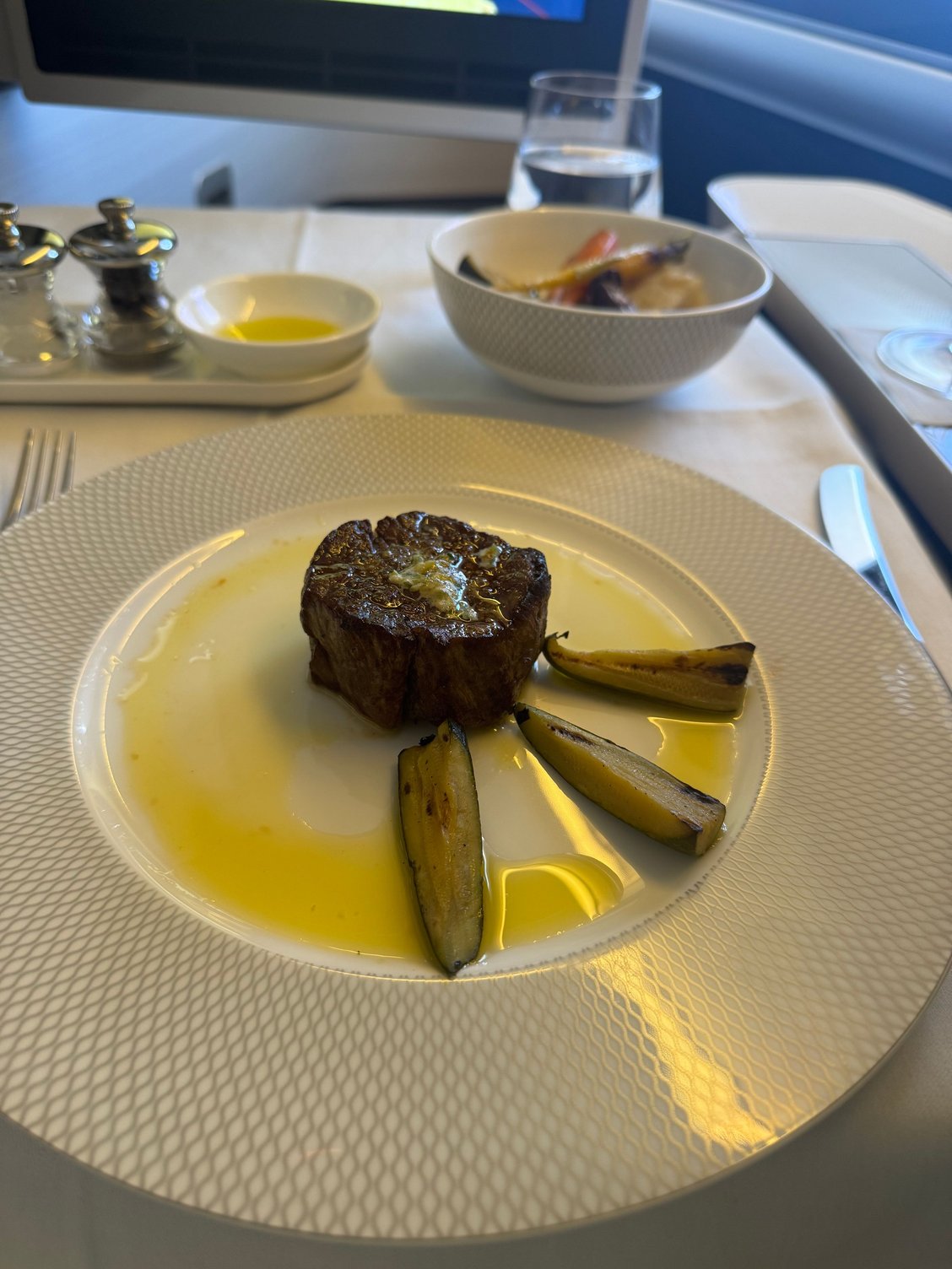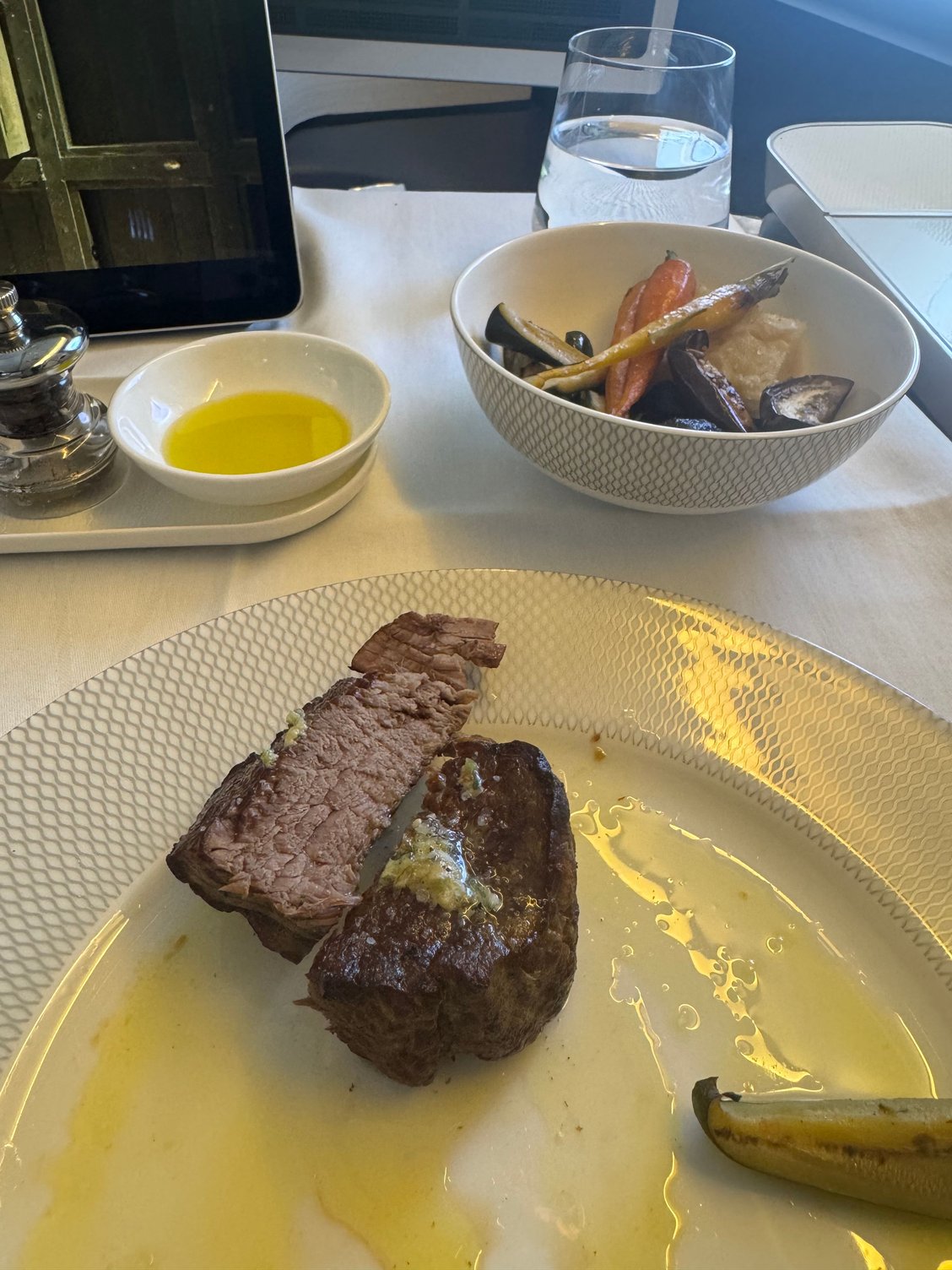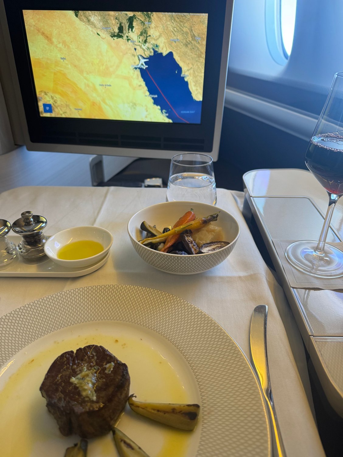 Table setup on the 772. The seat area looked quite fresh, unlike the A380 outbound which was looking pretty tired. I assume the F cabin had some maintenance as part of the CS refit on the older 777s.