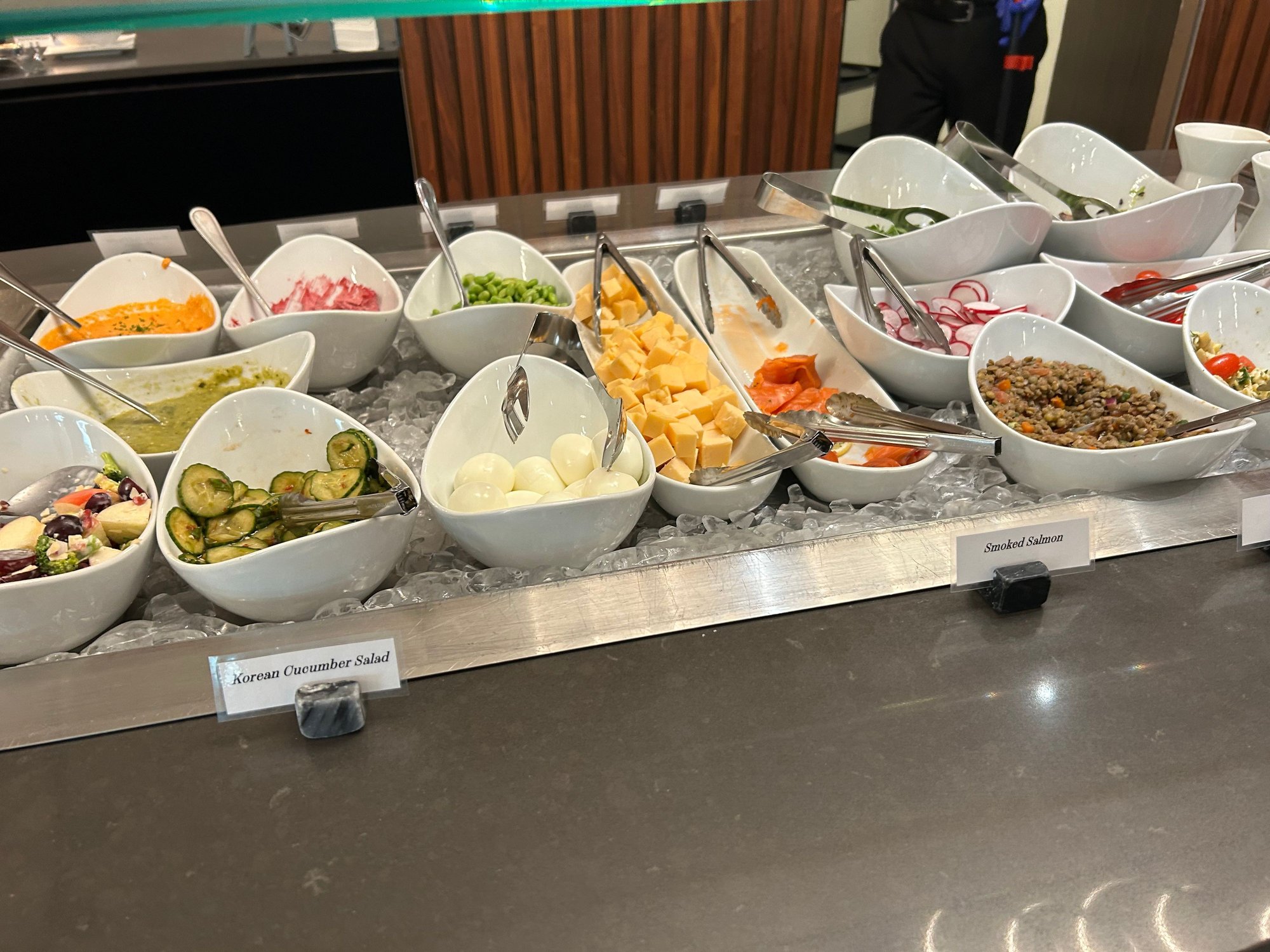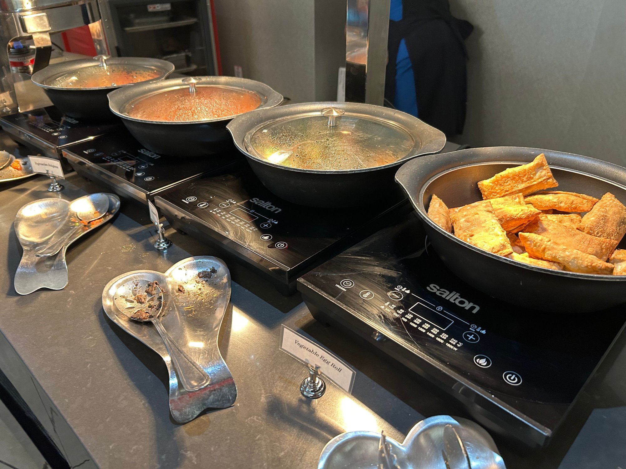 Food offer cold and warm buffet. Mostly vegetarian & vegan options. Not very appealing