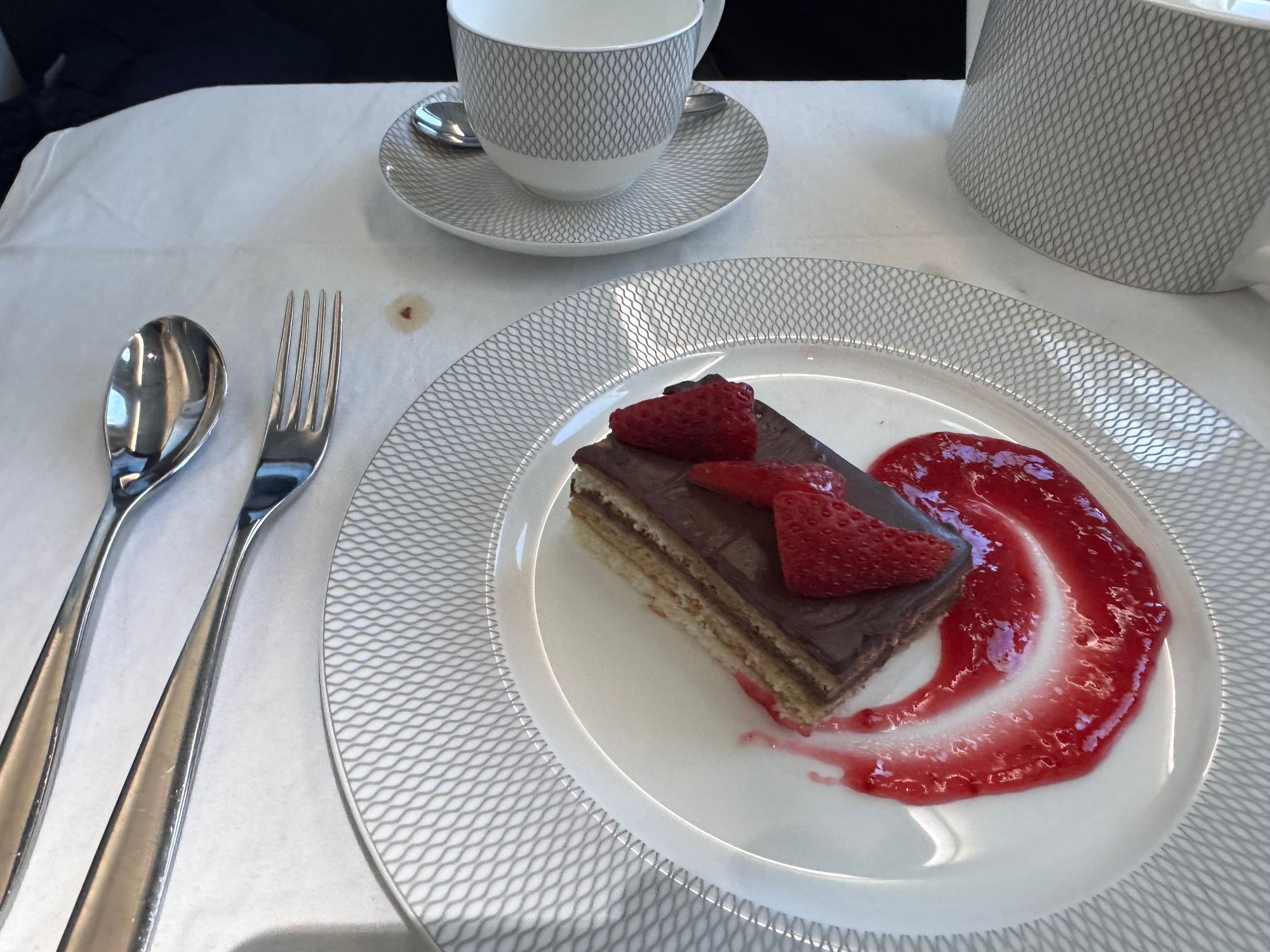 Crew were great and kindly worked around my latest injuries and also made it clear that it was dine on demand which was nice with the awkward flight times (dep 12:40, arr 5:50). Also had some healthy looking salad thing when I woke up in the middle of the night but didn’t get any pics. Skipped the amuse gueule and didn’t have any booze.