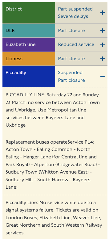 TfL status page confirms Pic line tickets valid on Liz line