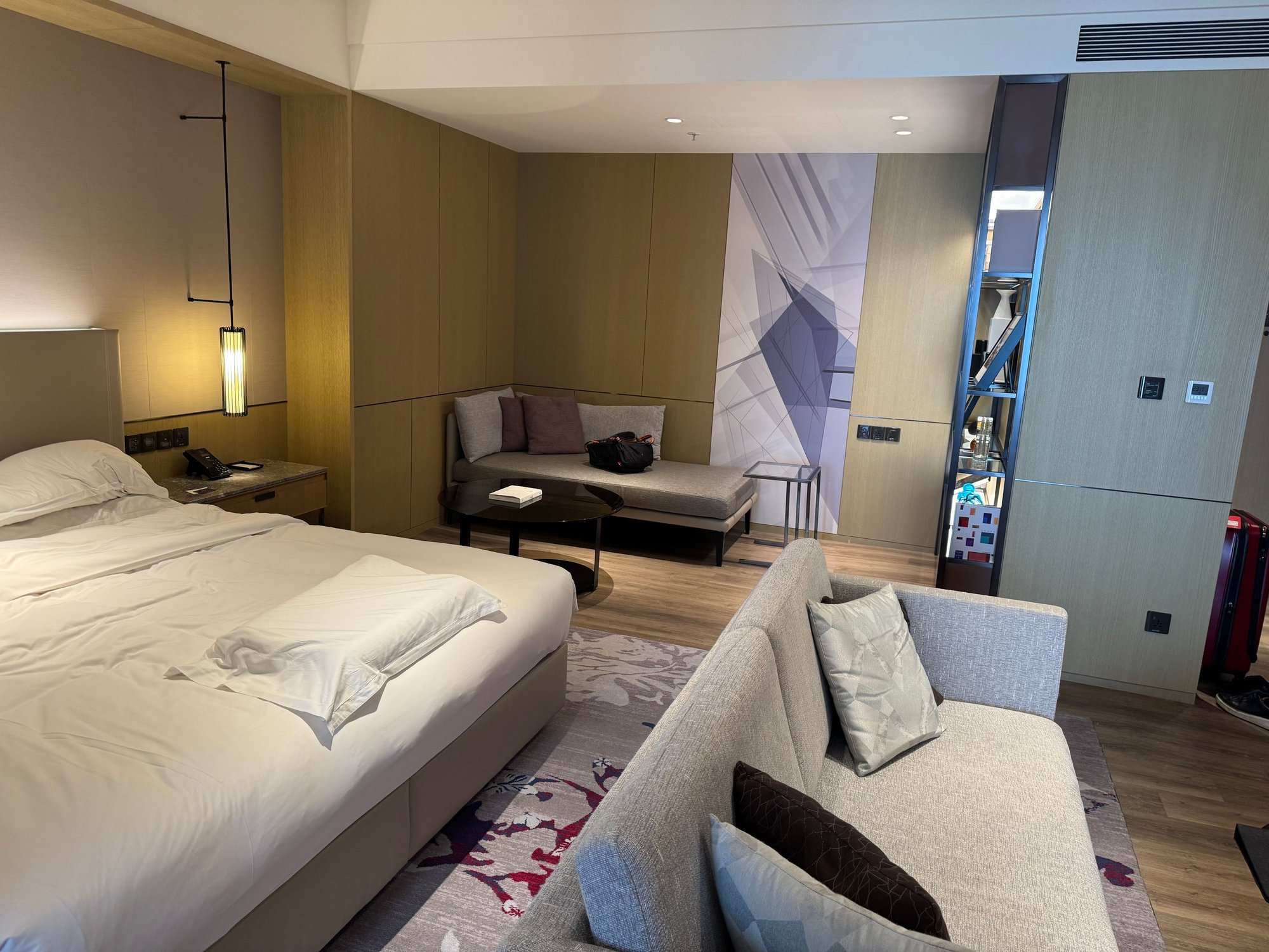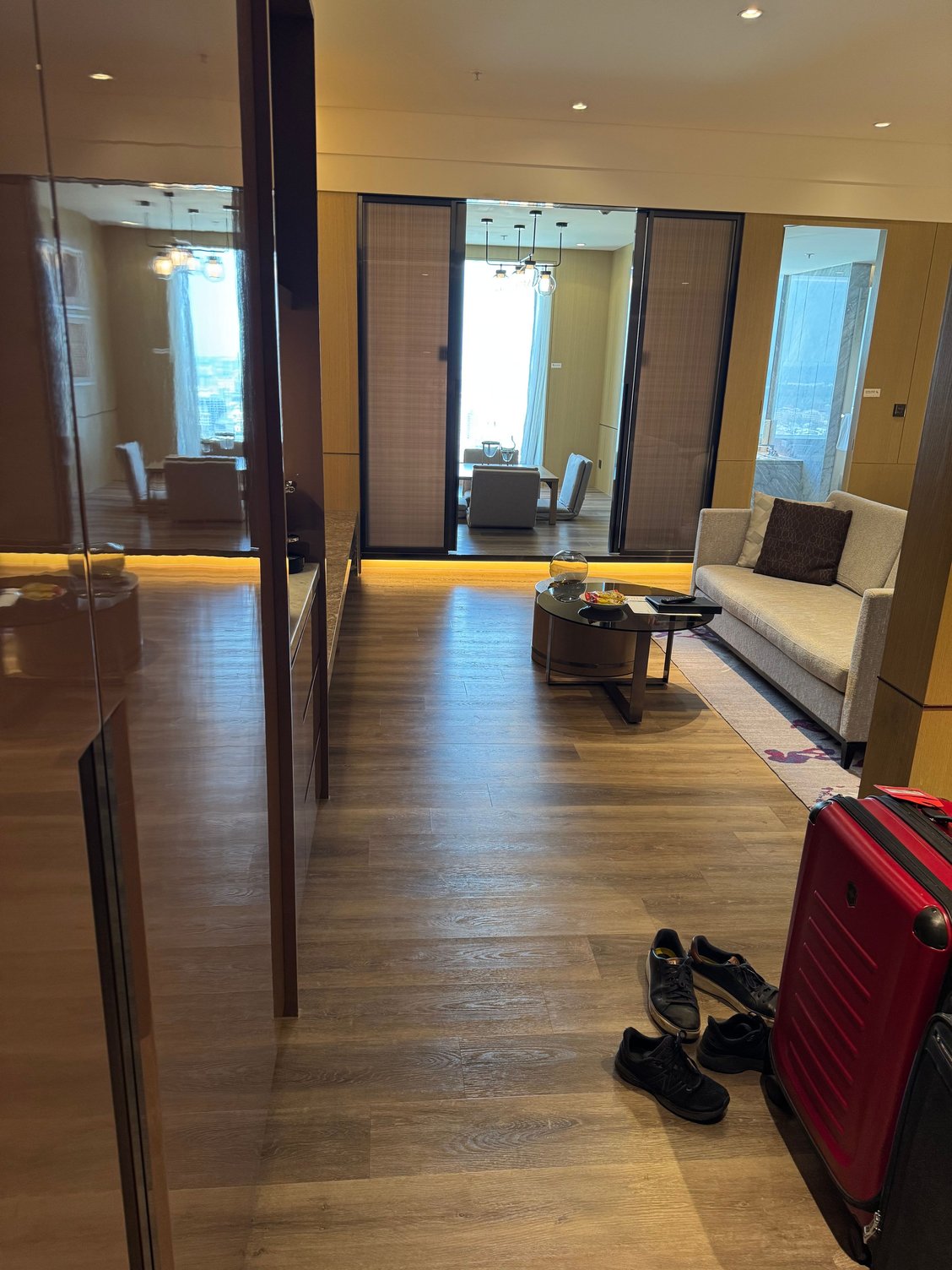 As others have mentioned, it’s connected to the E Sky Mall which is a high-end mall with primarily luxury brands, along with a great food selection. The atrium is gorgeous and check-in was smooth, with them kindly holding my bags when we arrived before our room was ready. We were upgraded to a Premier Suite (their base-level suite) as a Platinum member, which was absolutely massive. There was a Japanese-style dining room that went completely unused as we had no need for it. I know that they have higher-tier suites available, but I couldn’t imagine why we’d need more space than what we were given as just two travelers.