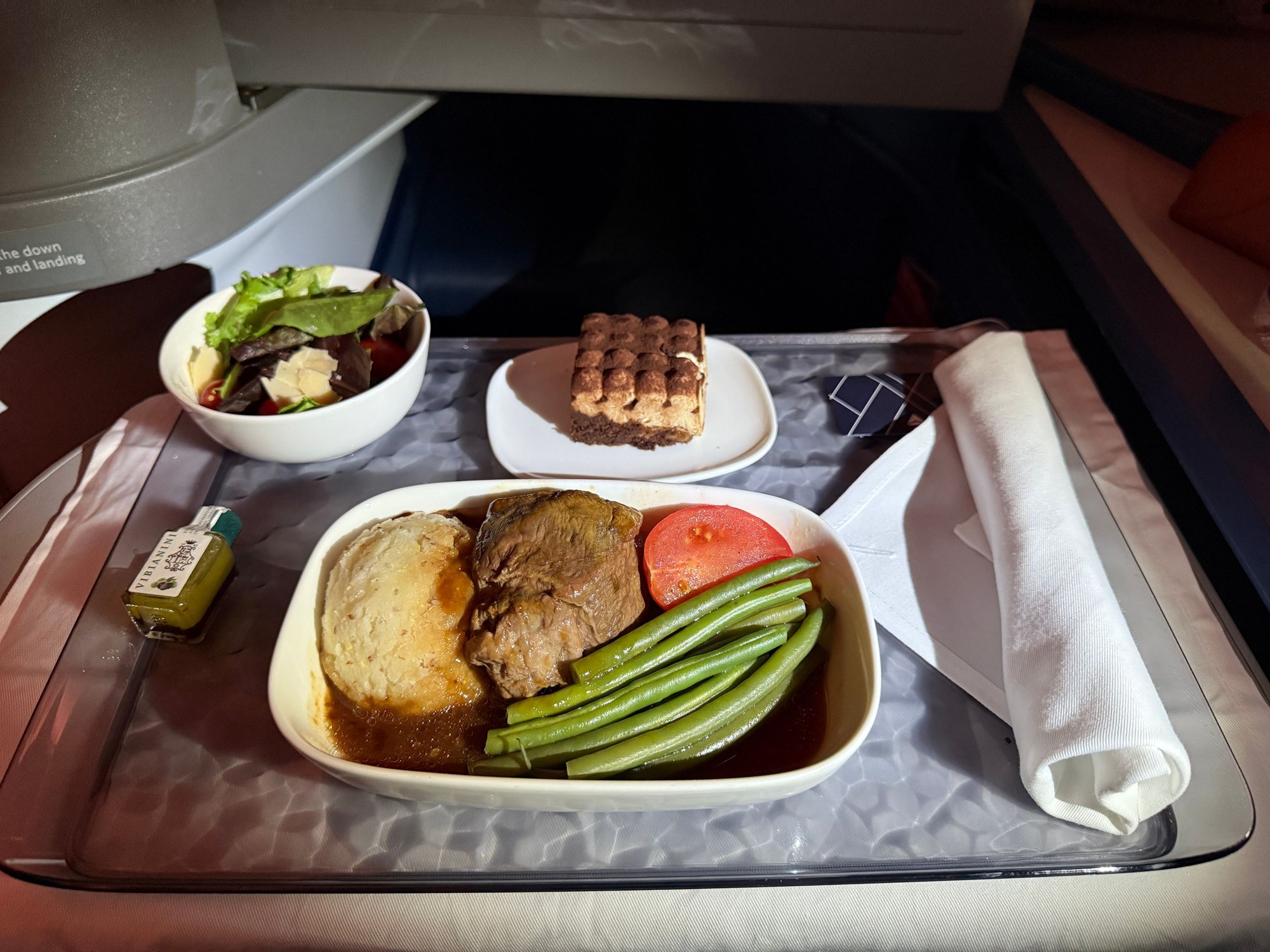 Had the same dish on MSP-SFO recently except the dish, especially the green beans were swimming in juice. Tasted great even given that.