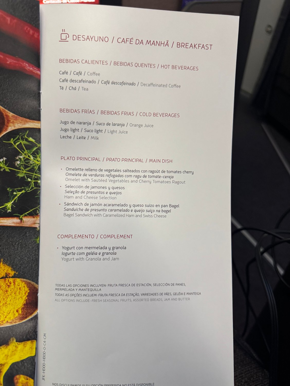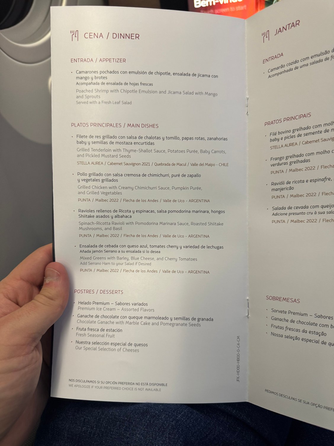 Given my meal in the D1 Lounge and my allergies, I declined dinner, instead opting for a few more cups of tea. I took photos of the menu anyway!: