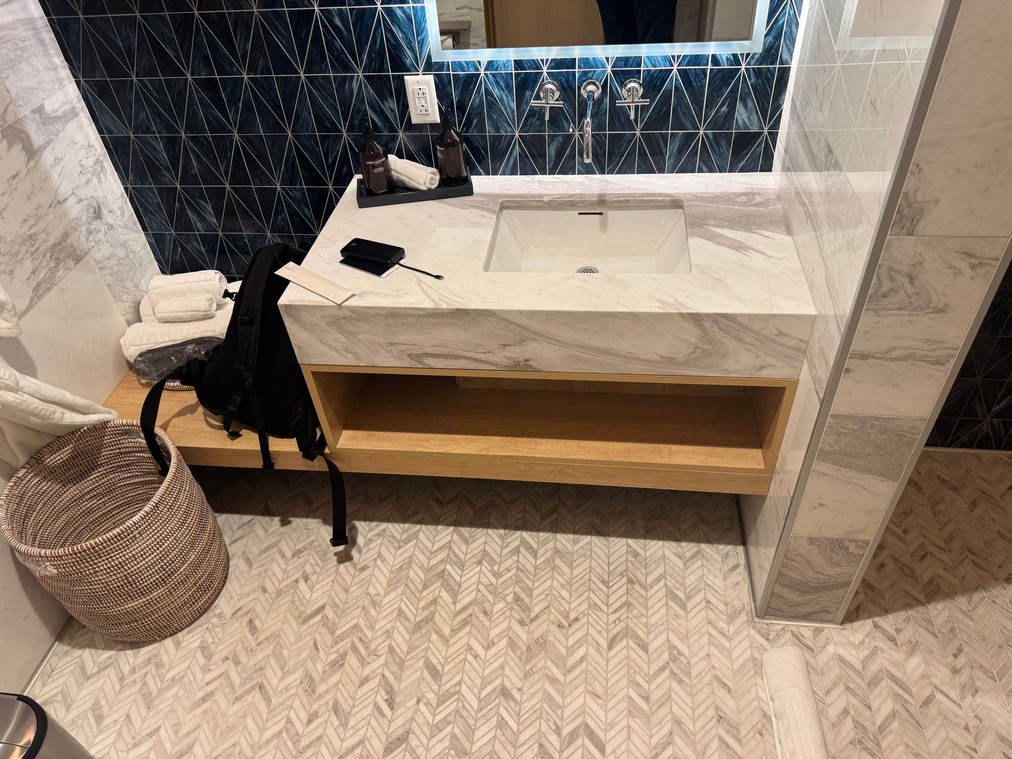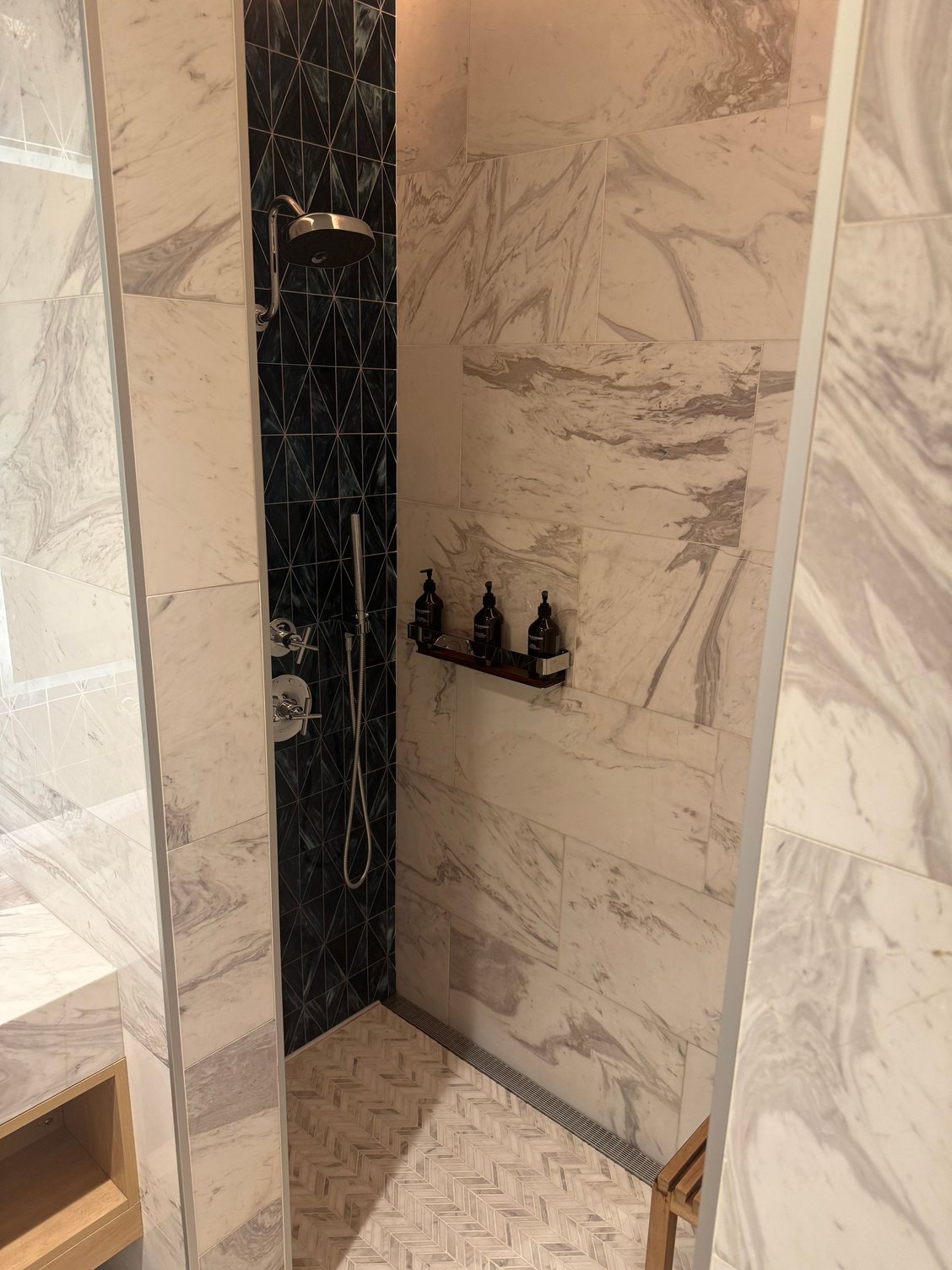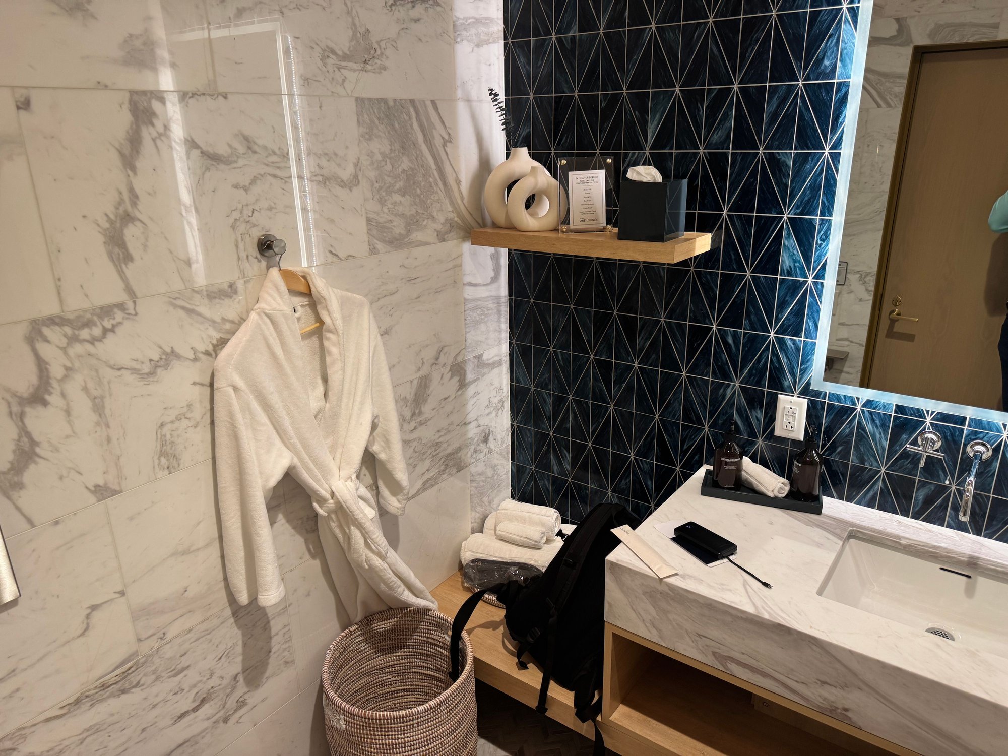 After dining at the bistro, I hit the showers to rinse off before the flight to clear my sinuses out before the long flight (I’ve been dealing with seasonal allergies). The D1 Lounge has the nicest shower suites that I’ve seen. Spacious, impeccably cleaned, and all kinds of amenities/toiletries available upon request: