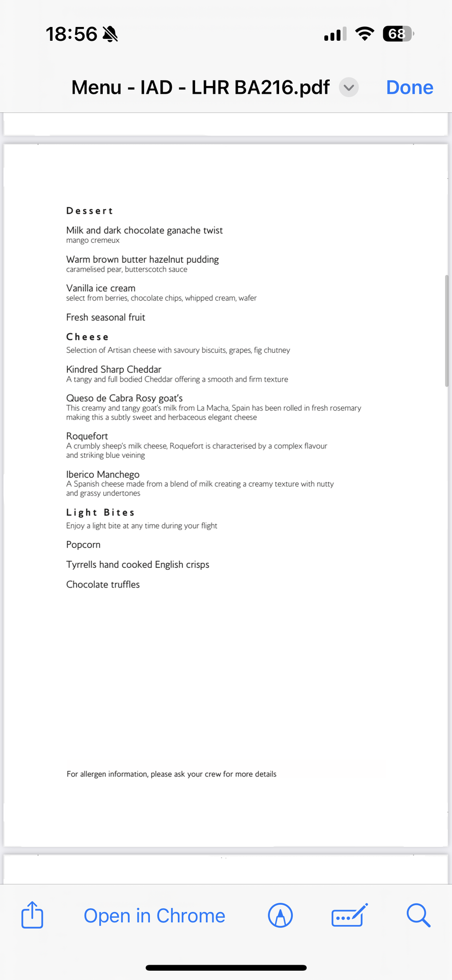 What is the etiquette around dessert and cheese? Can I request both? I’m more thinking about on the way out to IAD as for the second meal I am not a seafood fan so the fish finger sarnie is off the list and not too sure on the other.
