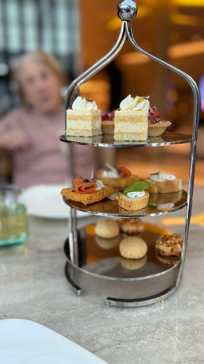 Afternoon tea service was bit meh - two very tiny canapes, two tiny petit fours and two Turkish savory cookies. Happy hour features a small buffet with soup, two hot bites (changed daily) and a salad buffet, cheese plate and the canapes and petit fours from afternoon tea. Club staff not too attentative, but also catered for special demands - like providing a bowl of hummus or a glass of ayran.