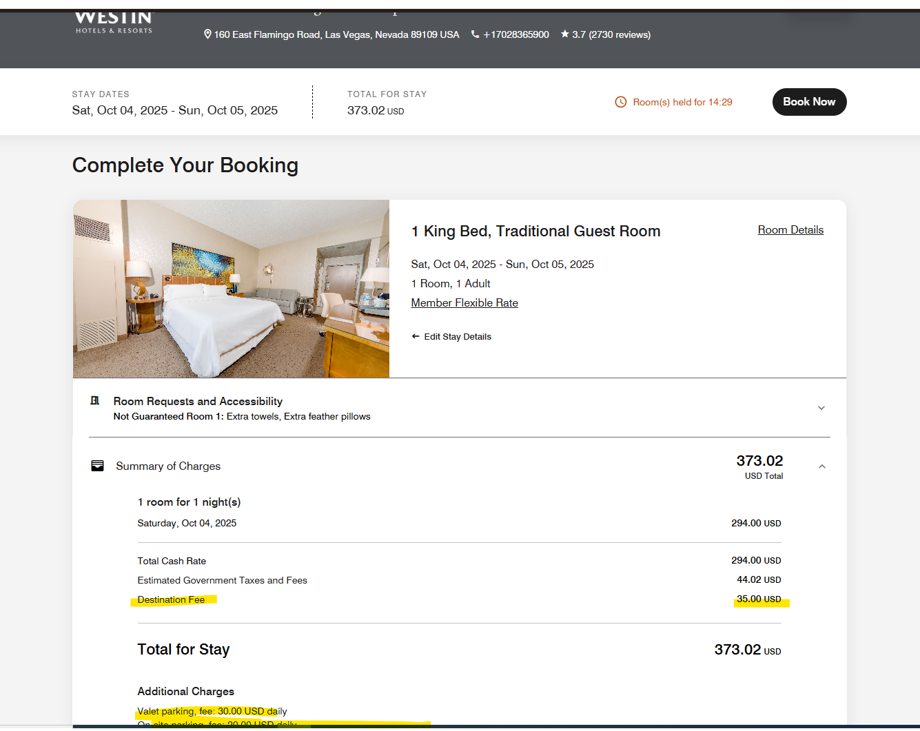 I didn't check the rest but the Westin has a $35 Resort Fee ( called destination fee) plus $20 a day parking