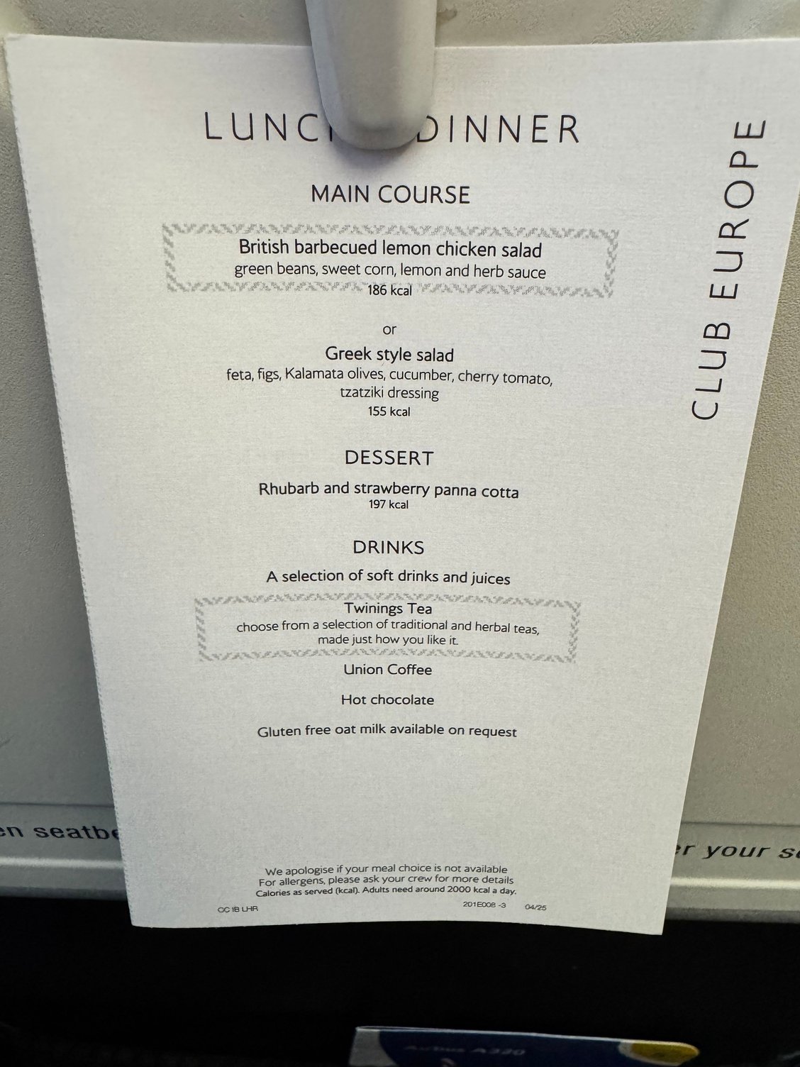 BA1325 from NCL - LHR. This is normally a breakfast flight midweek but on a Sunday it spends the afternoon exploring basking in the geordie sun and then heads back to London for bedtime. I was looking forward to the rhubarb but ended up with the Easter dessert
