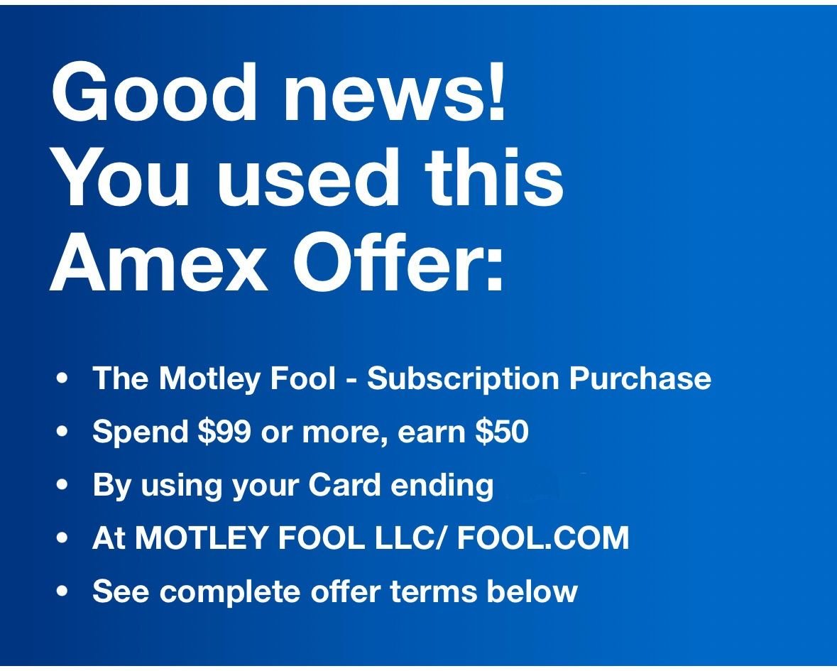Dp: $50 Amex Motley Fool offer triggered via MP Shopping link for a solid double dip on the Stock Insider ($128/2900mi) or Epic ($299/7200mi) levels. No need to go through Amex’s link.