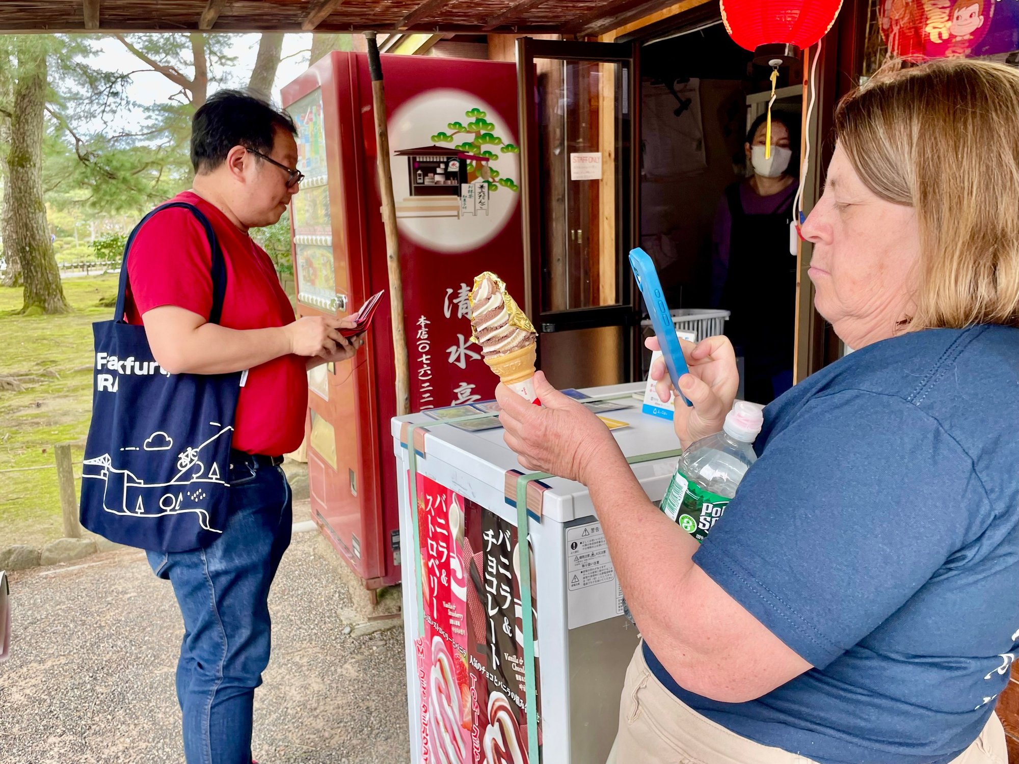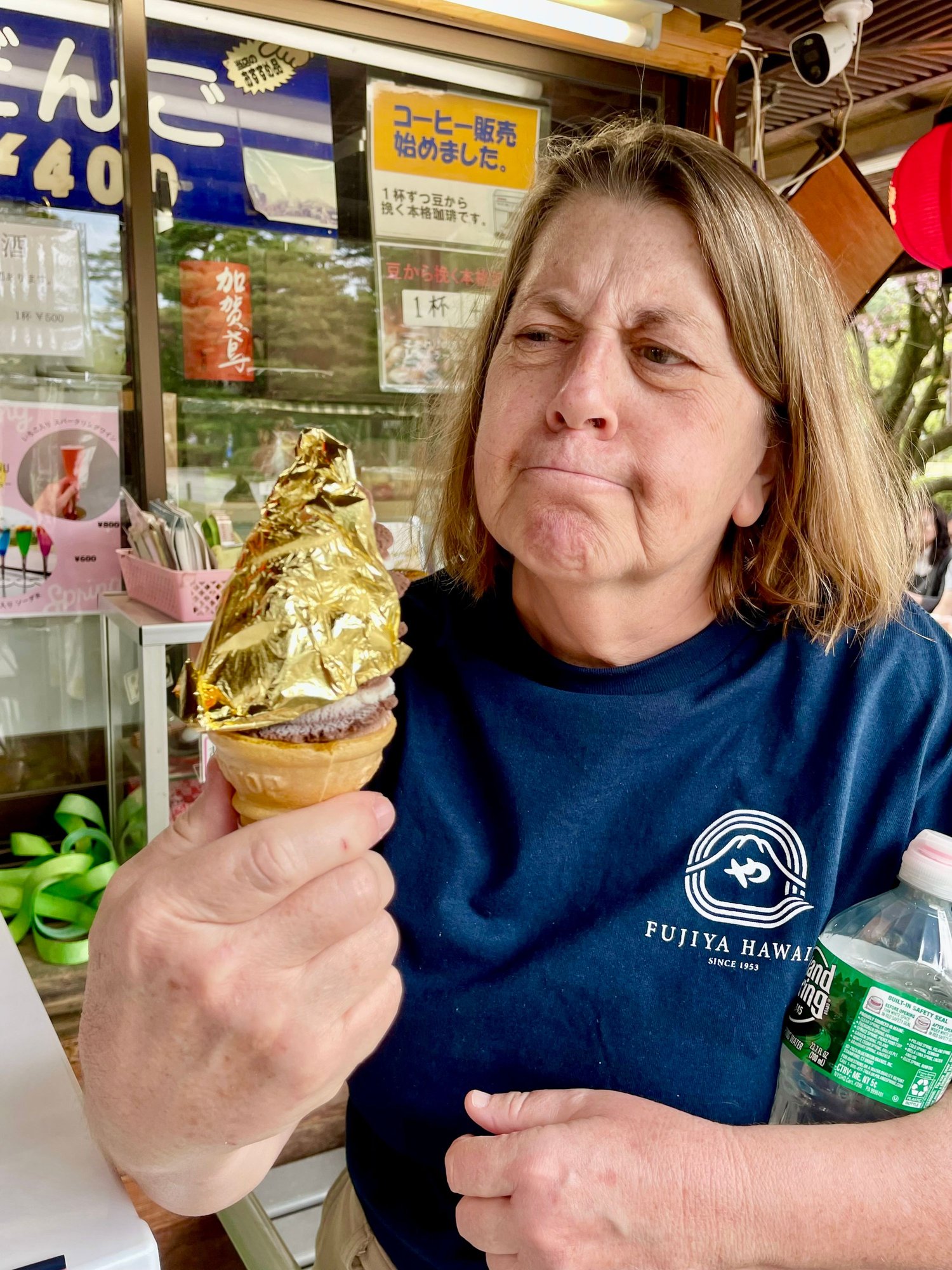 Kenrokuen Garden dates back to the Edo period and is considered one of the three great gardens of Japan. Unfortunately we were about a week too late for cherry blossoms but some people discovered ice cream with gold leaf (I’ve seen ice cream with gold flakes but not gold leaf!) Kanazawa produces 99% of Japan’s gold leaf.