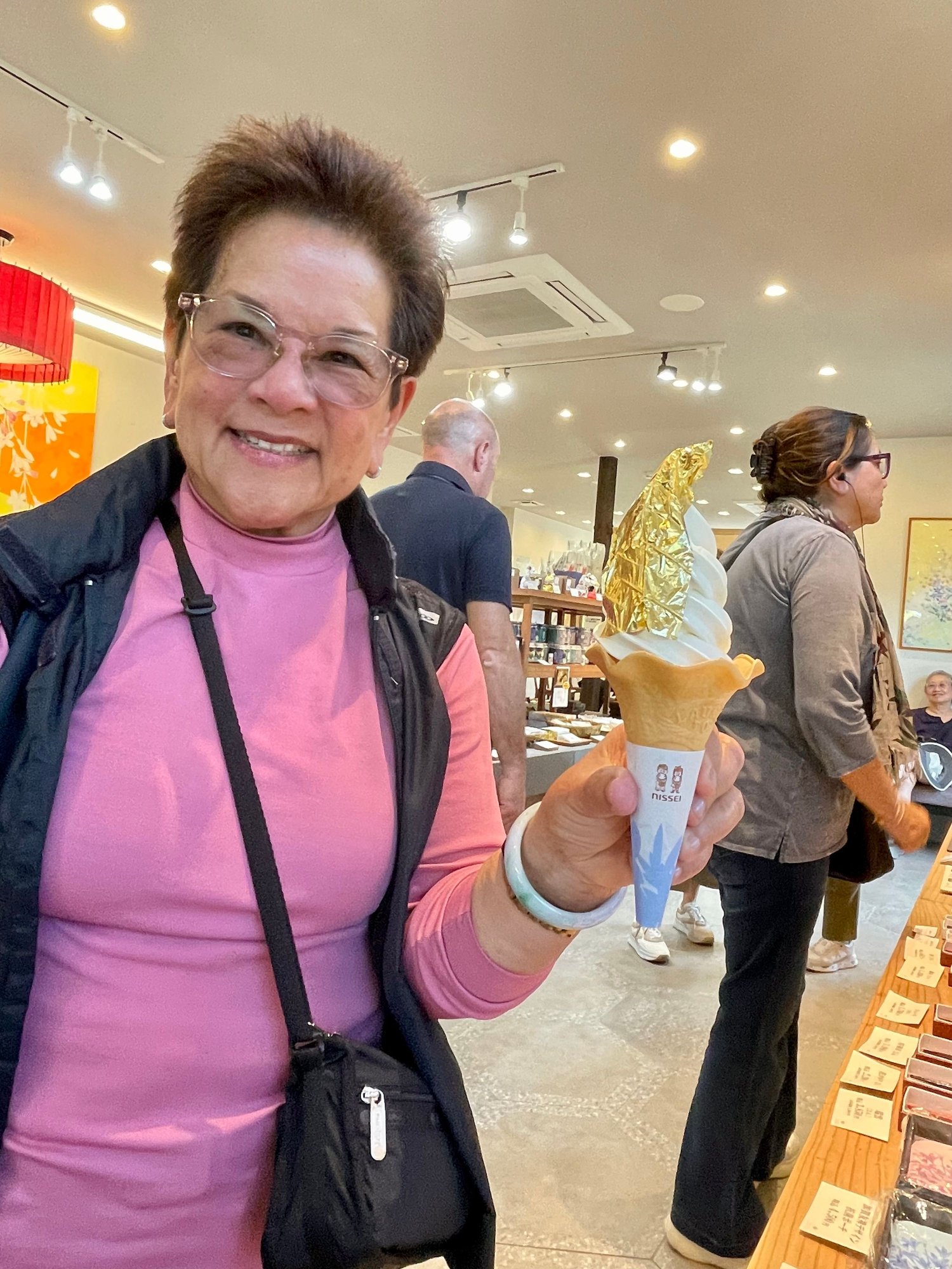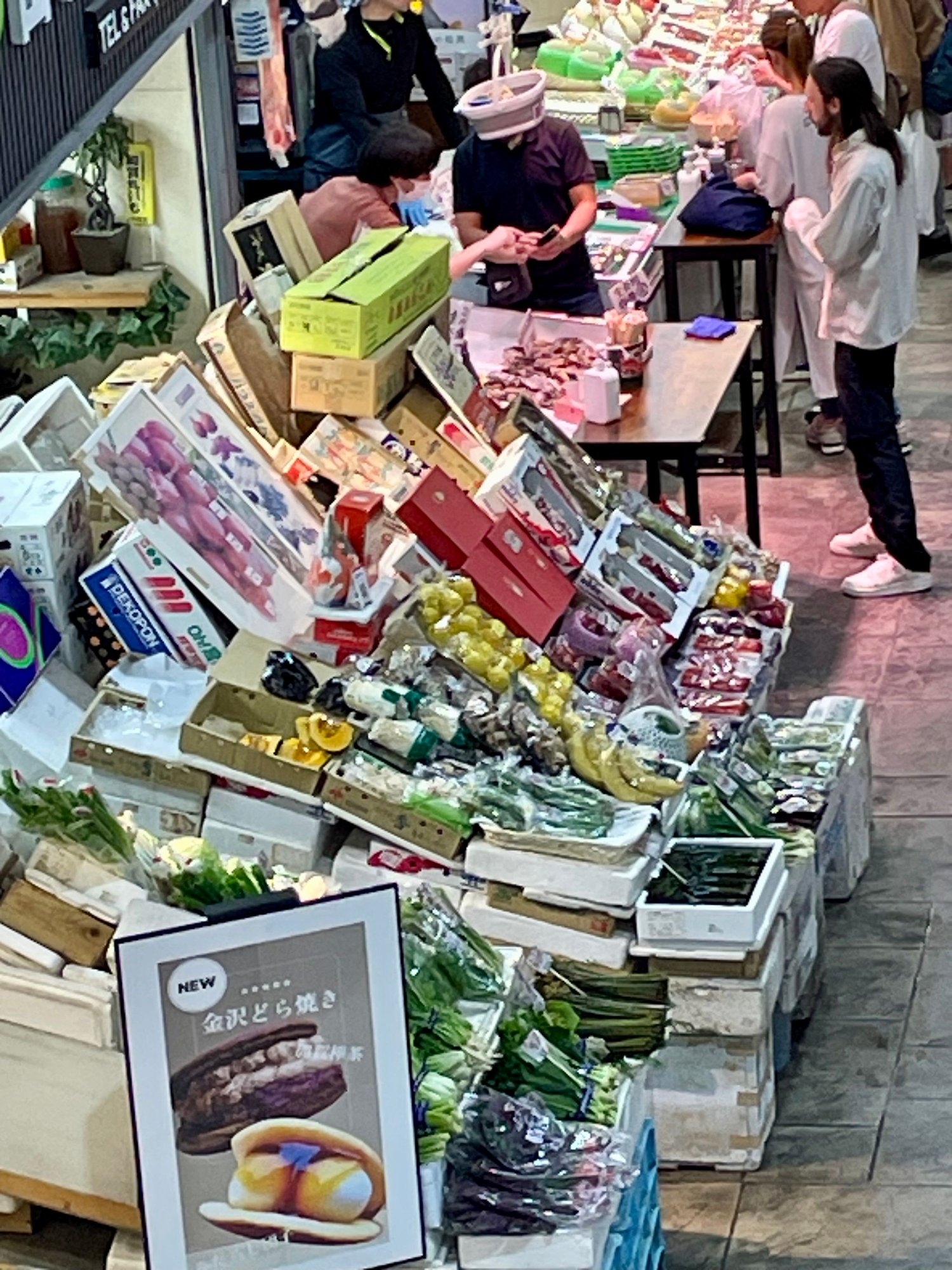 After Kenrokuen Garden and Kanazawa Castle Park we walked a short distance to Ōmichō Market which was not as busy as I had feared. After lunch we caught another bus to Kōrinbō, Kanazawa’s main shopping district. No time for shopping but we walked to Nagamachi, a former samurai district located at the foot of the former Kanazawa Castle. Some visited a restored samurai residence while others enjoyed a chance to sit down with refreshments. Another walk (it was meant to be a walking tour!) to Nishi Chaya District before catching a bus back to where we started.