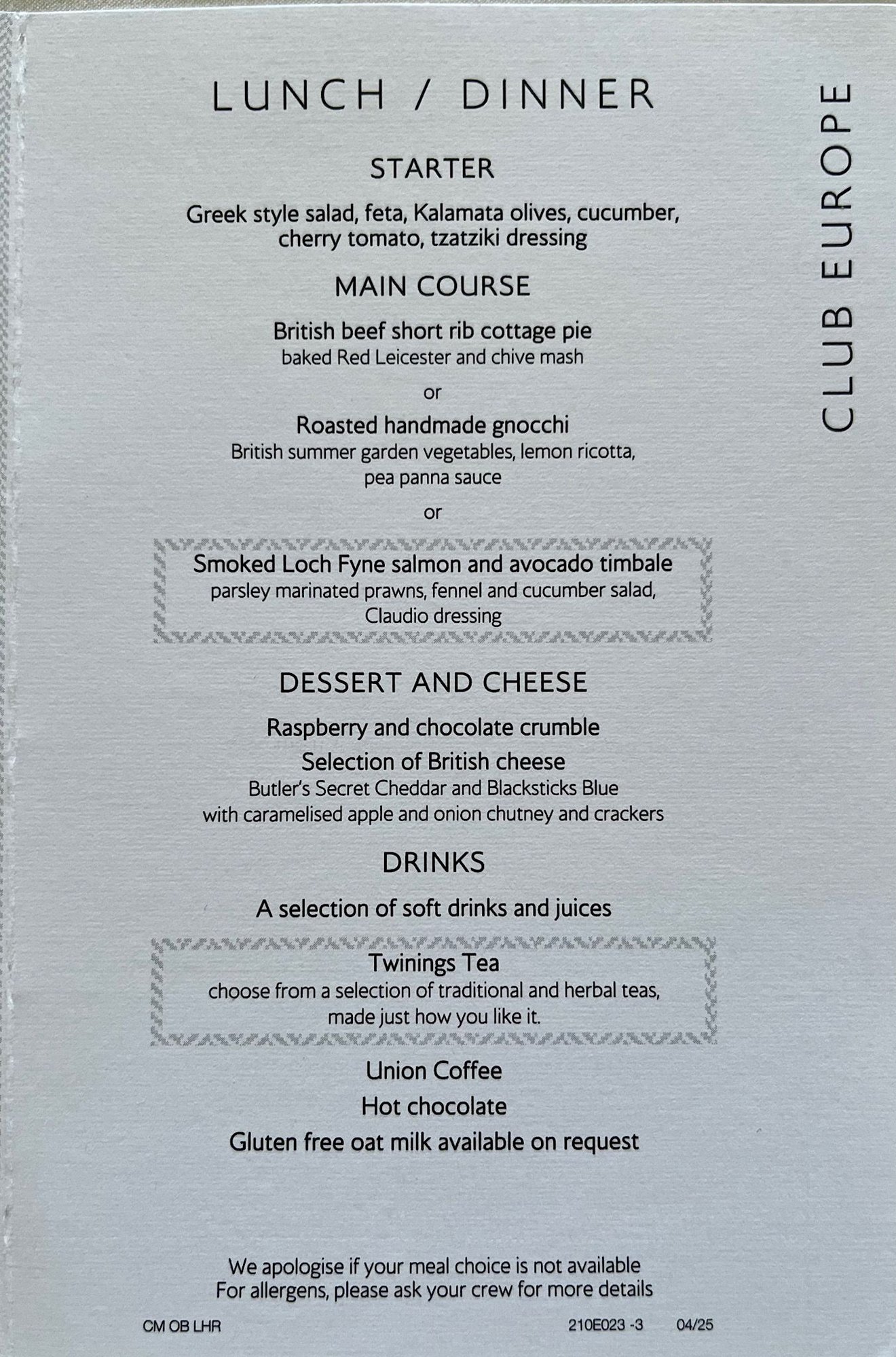 I’ve had the cottage pie on previous flights and found it to be very tasty, so decided it was a good choice this time as well.