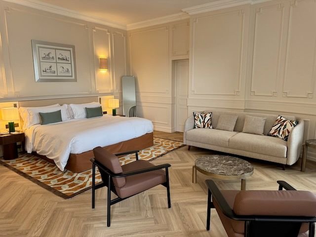 Hotel is split into the historic building and the modern building - my room was in the historic part which seemed a lot nicer to me. The only issue was going to the spa involved walking through reception (whereas the new building had direct access). I booked a Queen Premium and received a Junior Suite (Diamond Ambassador) which had a wrap around balcony with entrances from the living room and bathroom. There was also a walk in wardrobe. Welcome gift of fruit and an Easter Egg appeared which was really nice.