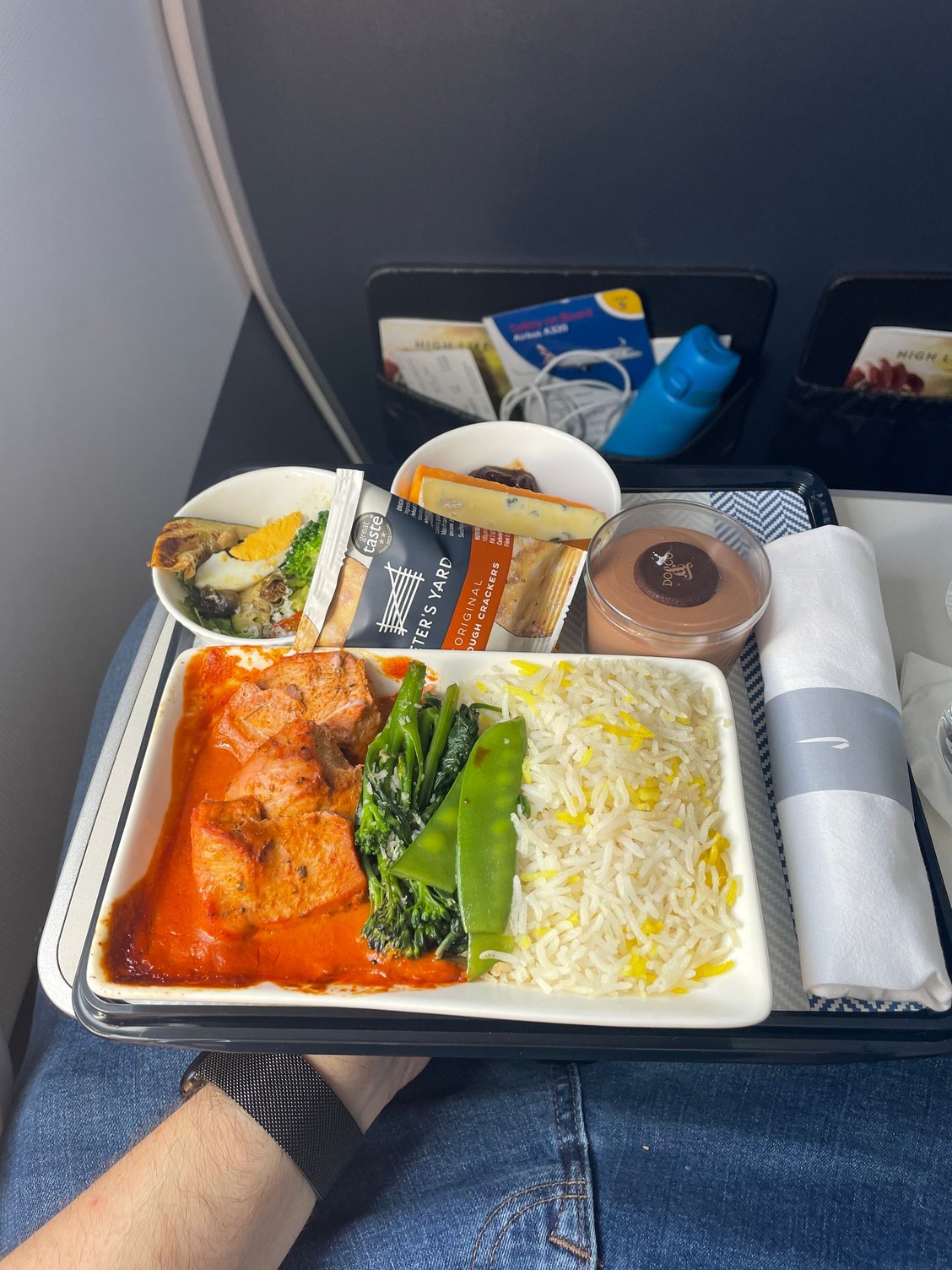 However the drinks trolley hadn’t even got half way down the cabin at this point. I was offered no drinks with the meal (drank water from a bottle). A bread roll appeared after I’d finished the main course.