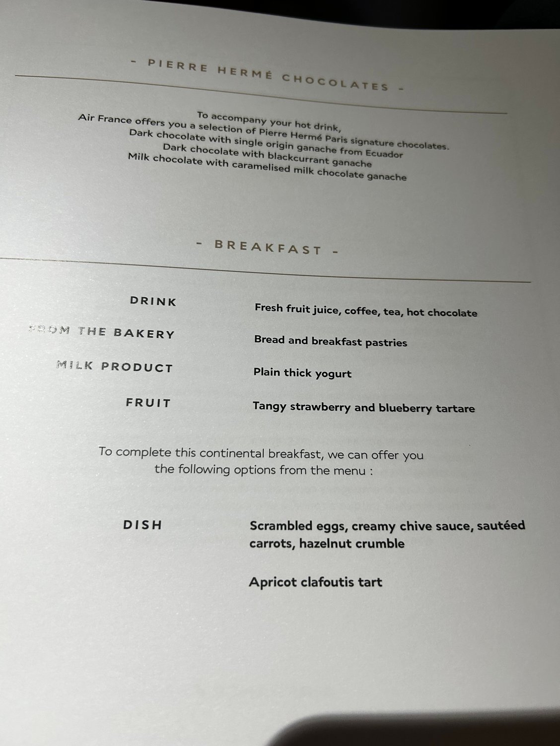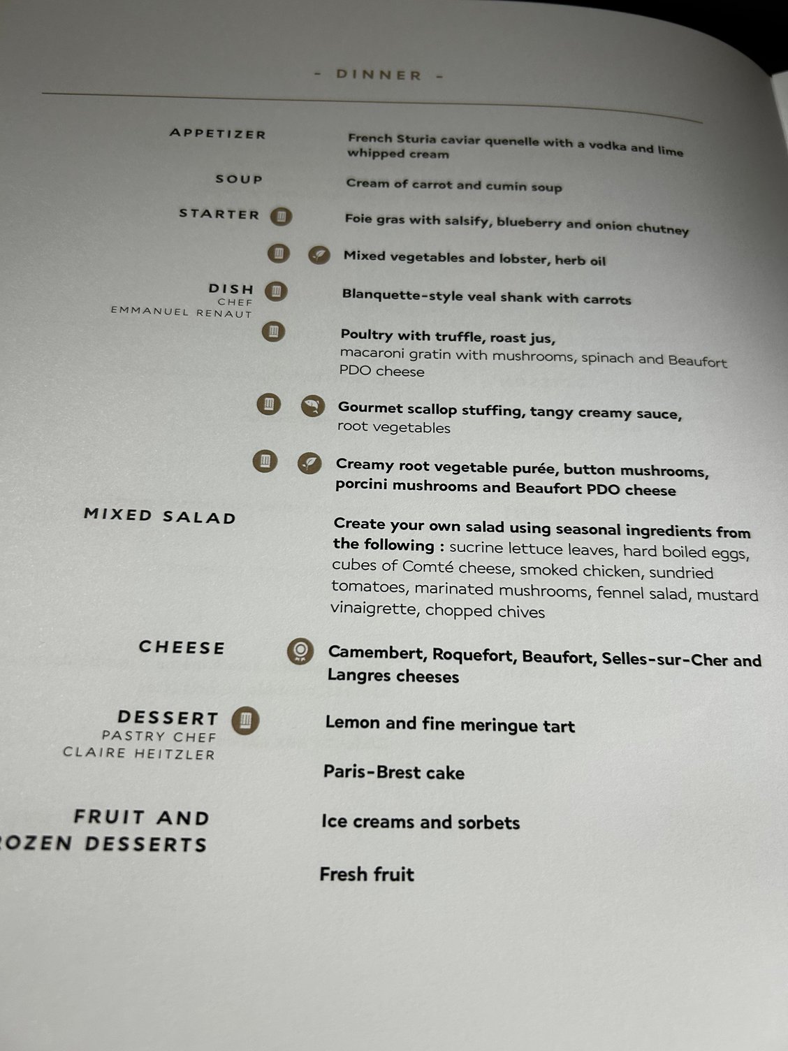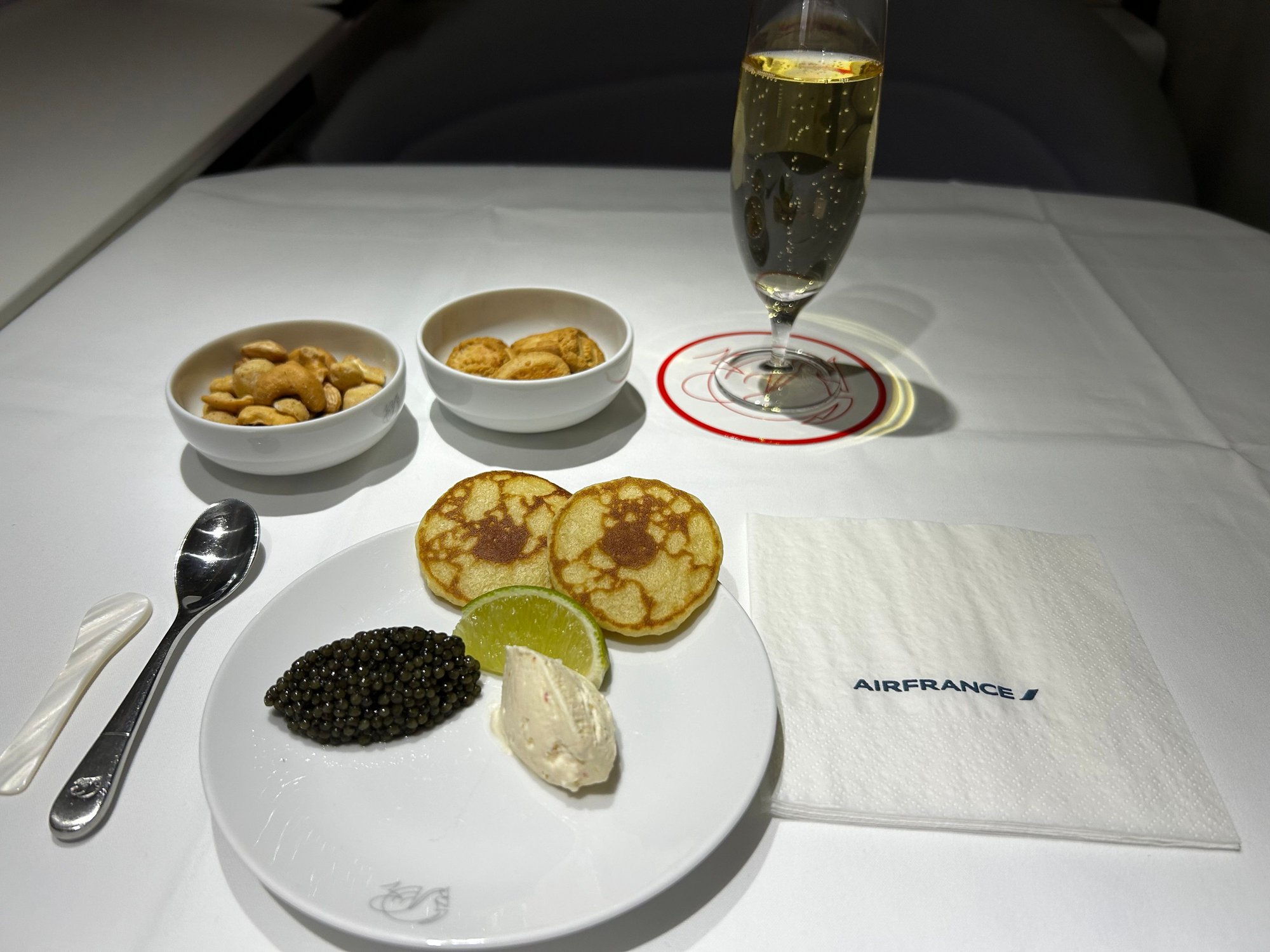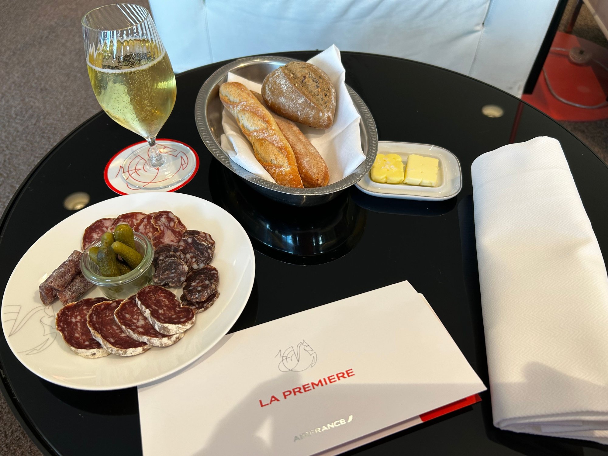 Excellent welcome in the P lounge by AF agents and by Ducasse team who remembered me from previous stays. I had an excellent lunch in the lounge with the paté en croute and the beef filet which is a true killing. The waiter strongly recommended me the “exotic soufflé passion fruit coriander and mango sorbet” for dessert. I did not regret it as it was incredible. He also told me the lounge menu would change 2 days later (so it should be implemented now).