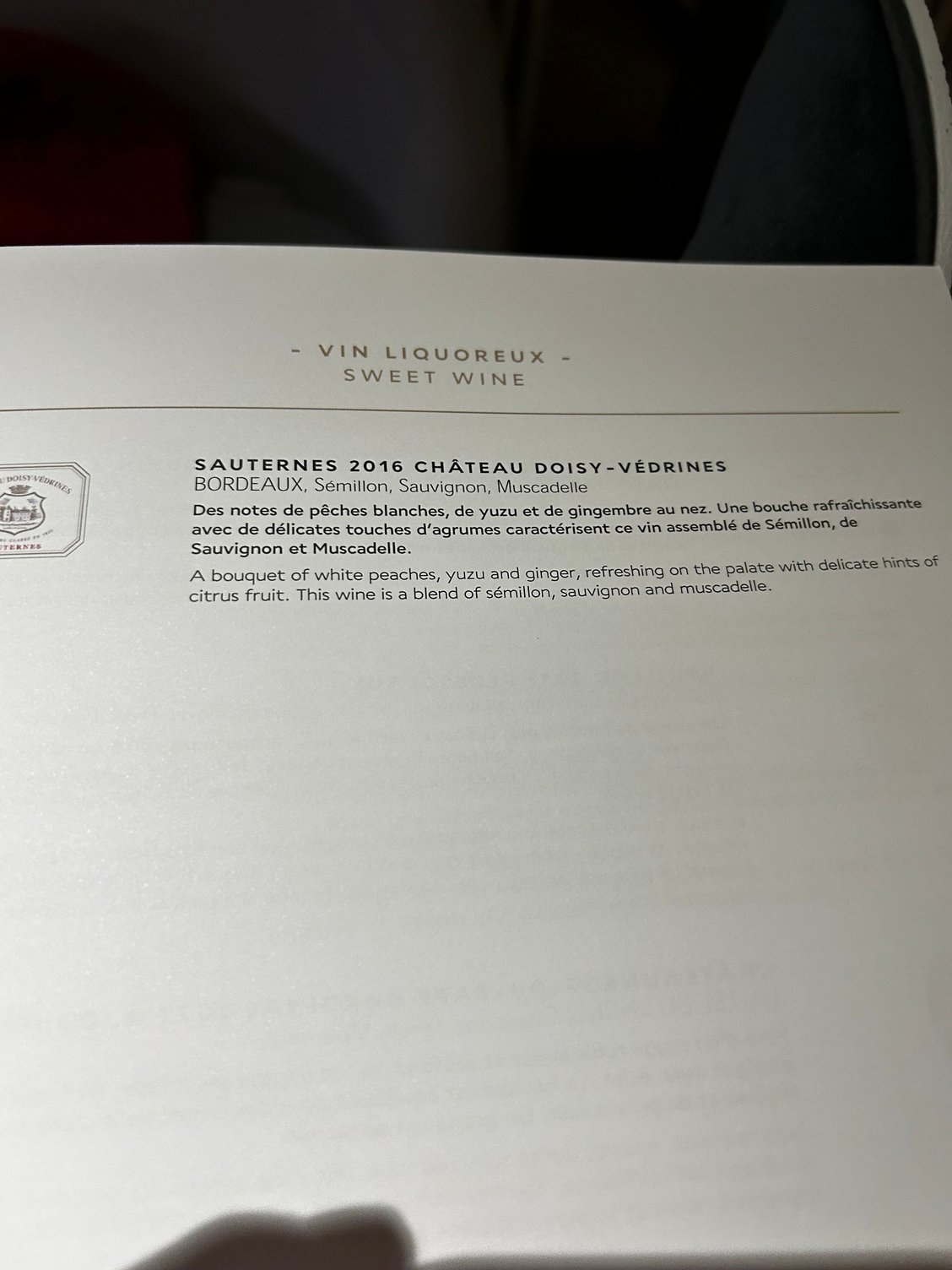 I took the soup, the “mixed vegetable & lobster” for appetizer and the veal blanquette-style for main course. It was delicious. Then cheese. I was so full, so even if I was very tempted by the Paris-Brest, I just took some sorbet and fruits and asked the FA to keep one Paris-Brest for me for breakfast