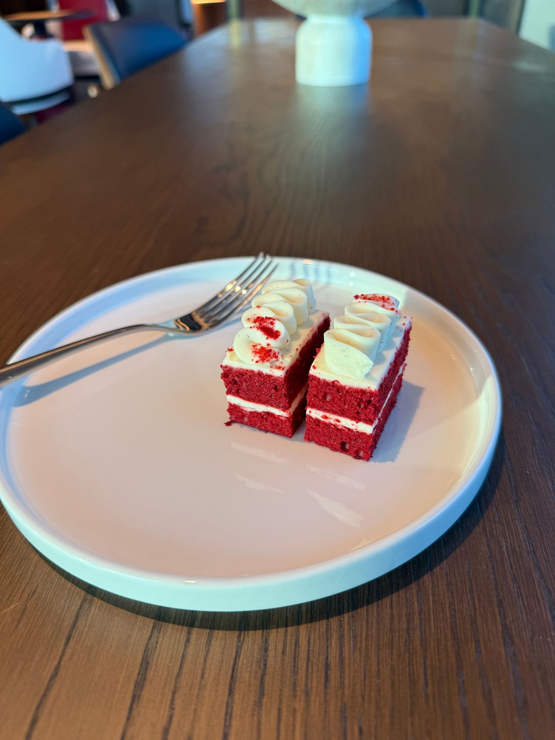 - Evening lounge service from 5:30 to 8 had good red velvet cake as dessert