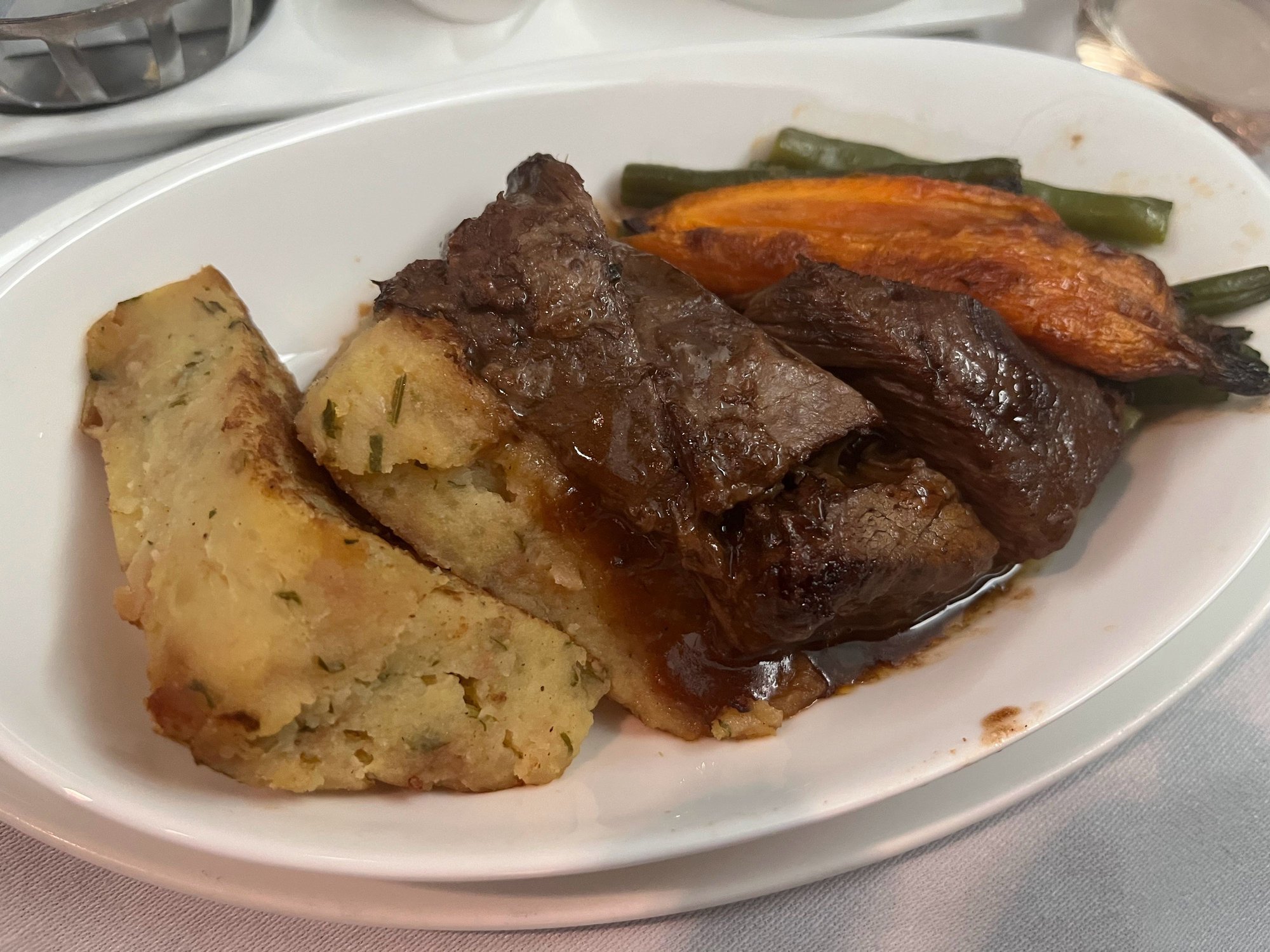 Braised short rib. Appropriately pull apart. I thought the pommes had a strange sweet note.