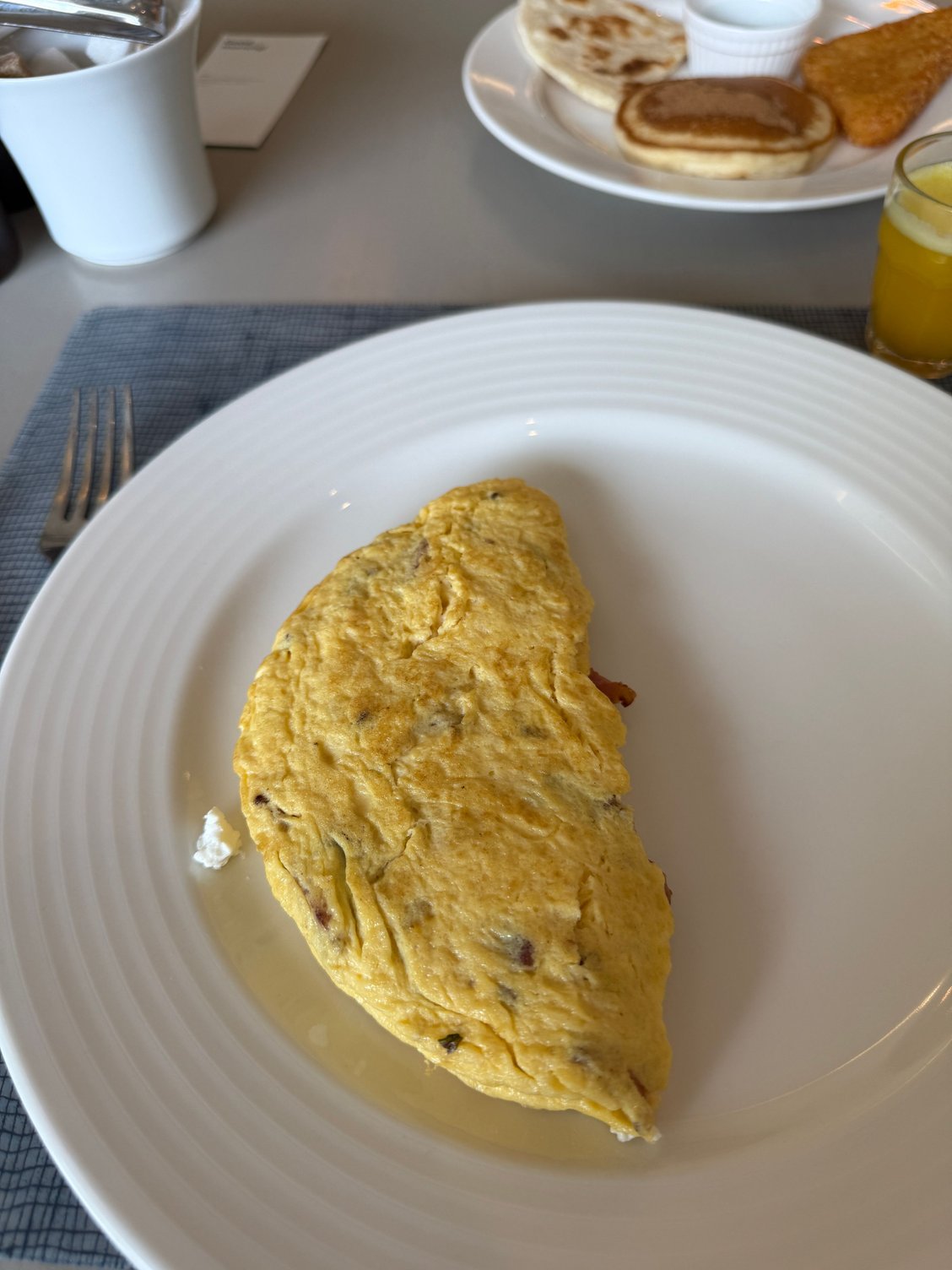 - Breakfast only served in restaurant and offered to Elites - very good for Riyadh - tasty barista coffees, good goat cheese omelet, good pancake with cinnamon, good mint chutney, friendly service