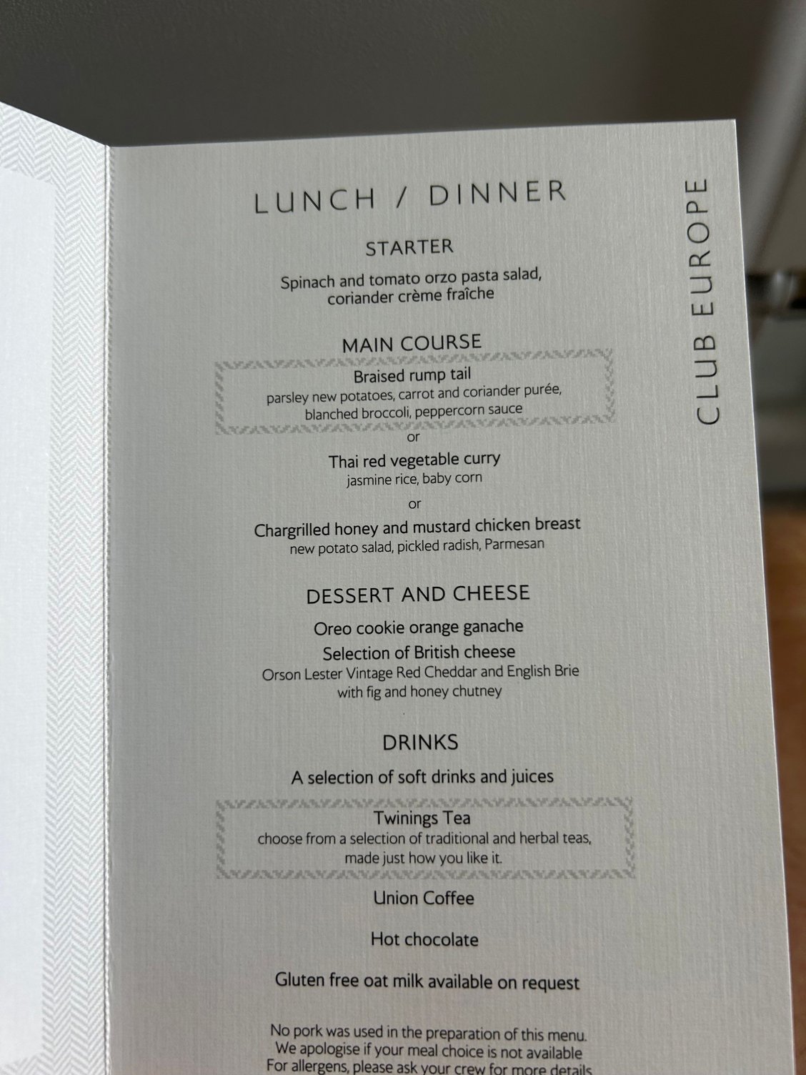 LGW - AYT on the dreaded G-MEDK. Aircraft had done a rotation to OPO in the morning and was looking pretty grubby by the time we boarded. Anyway, menu cards were duly dished out shortly after takeoff and the drinks service was good with top-ups offered through the flight. Good crew who were busy around the cabin for most of the 3hr 40 mins we were airborne.