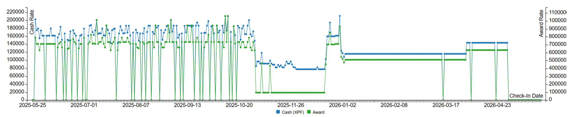 Check out Nov 1 to Dec 20! Low season, but almost every night is a standard award - 95k points. Yesterday every night during that period was a standard award.