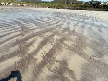 First stop was Ceann Trá Beach and it is a stunner. The beach is so wide and the water azure blue. But what was most intriguing, other than the luscious sea air, were the tracks left behind by the seaweed as the tide receded. I have included a couple pictures.