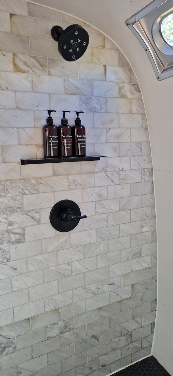 The shower was surprisingly spacious and very comfortable. Aside from needing to be mindful of water usage, it really felt like staying in a first-class hotel. I didn’t try the AutoCamp-branded toiletries (except for the hand soap).