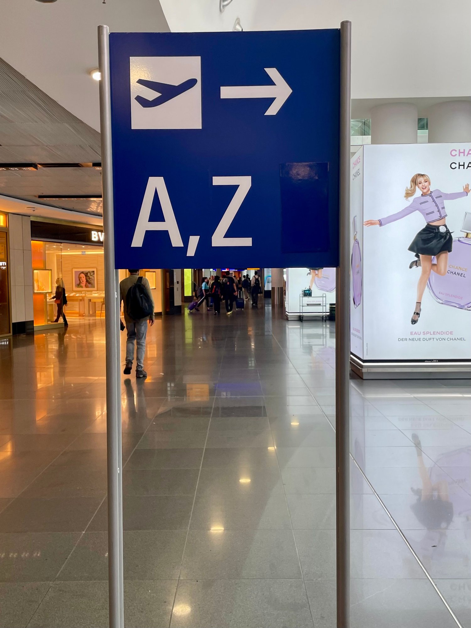In Z concourse these are the signs near gate Z11.