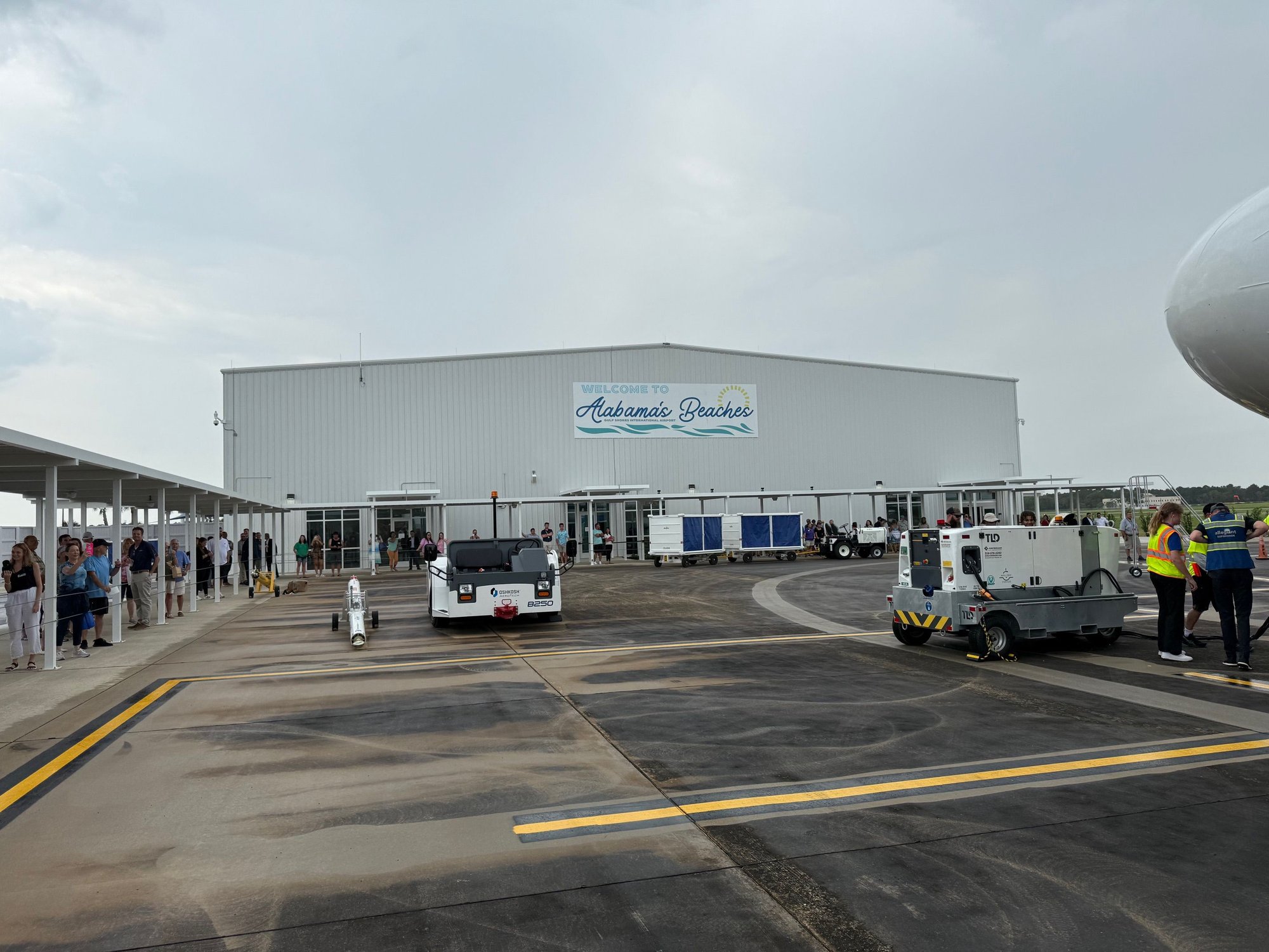 Back in November of 2024, reading the daily airline schedule update summary I get in my email, I saw an airport I didn’t recognize. Well, the airport existed, but didn’t have any airline service. Or a terminal. I wasn’t entirely sure where it was, but with a name like “Gulf Shores, Alabama” there’s a fairly limited area where it could be. This gulf-side town, roughly halfway between Mobile and Pensacola, had the benefit of an airport with two runways (one being 7000 feet in length) that was gifted to the state by the US Navy in the late 70s, renamed Jack Edwards Airport, and later sold to the city of Gulf Shores (airport code is one of those funny ones…. IATA is GUF but ICAO is JKA). Apparently they decided they wanted airline service so announced that Allegiant would begin service from about a half dozen cities, in the twice a week from each pattern they do best, in May of 2025 on a Wednesday. The first flight would be from Knoxville, TN with a midday turn. Of course the next day I bought a ticket on this flight, in seat 1A, then figured I would plan the rest at some point.A lot of planning would need to be done because as of that moment, there was a concrete pad partially poured and a sign in the dirt where a terminal would supposedly be completed by this date in May. I gleaned this much from the local news website and Mobile TV news. I figured at some point there would be a rental car to be had (until then, I reserved from Hertz at the FBO that looked like it would be nearby where the terminal should be, but in reality wasn’t). Then, a few weeks later, Allegiant notified me the schedule changed and the flight from TYS would sit for 4 hours in Alabama before returning to TYS. Probably to do some training, let dignitaries speak, cut a ribbon with stupidly large sized scissors, and let every local civic leader with a hard plastic nametag don a sport coat to have something on their calendar that week. Seriously, I’ve done a lot of inaugural flights and it’s always interesting who turns out…. As I found myself in Norfolk, VA once talking to some Director from the Botanical Gardens (lovely place, I’m sure) whose presence and observation was vital to JetBlue being able to board it’s first airplane from the airport.