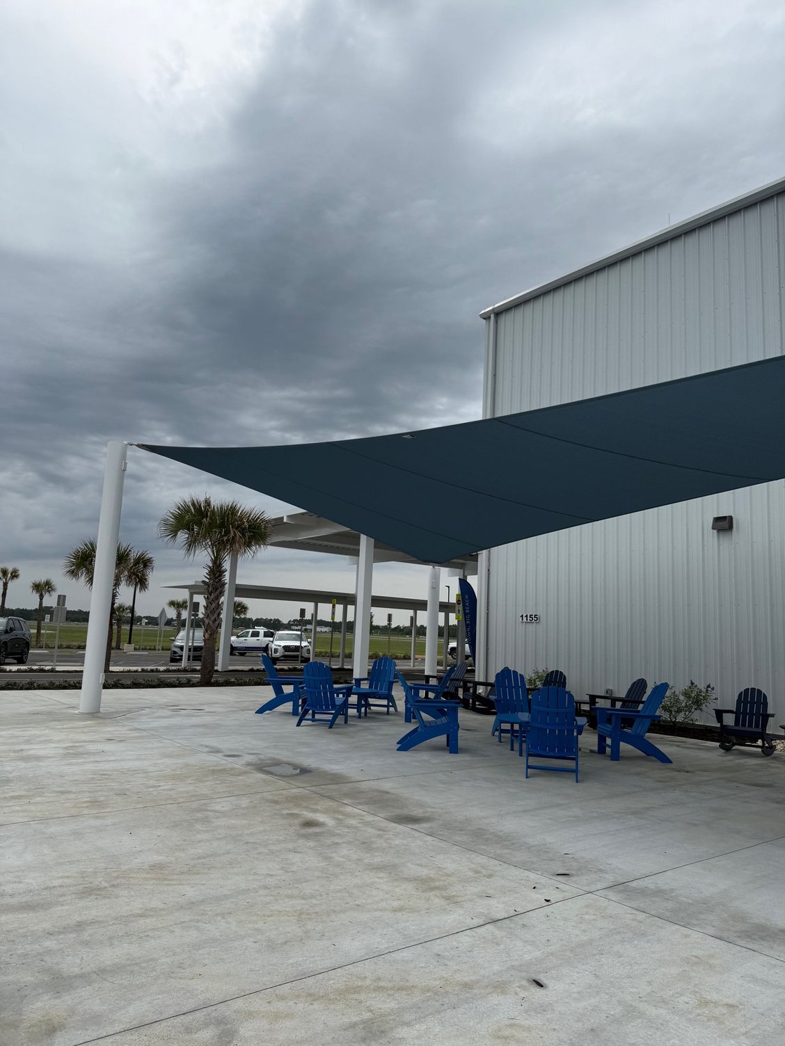 I went to the Enterprise/Alamo counter where I was welcomed as the very first customer at the branch! They had my info already as a National Executive and keys/folio ready (which is odd for Enterprise in my experience). Fairly quick check out and was headed outside to find the car so we could have a quick drive around and grab some lunch. I was quite pleased to get outside and see that my $35 plus tax yielded a fairly low mileage Audi A5. That’ll do quite nicely. Also saw on the outside of the terminal a nice area with beach-type chairs to wait and an area that seemed purpose-made for a food truck to park (which there was one sitting there so I guess that helps). We were amazed driving out of the airport the number of cars parked everywhere in overflow lots, temporary lots, all along the road even a half mile away from people attending this first flight. From the media, it appears after we left there was a ribbon cutting ceremony, more speeches, etc.
